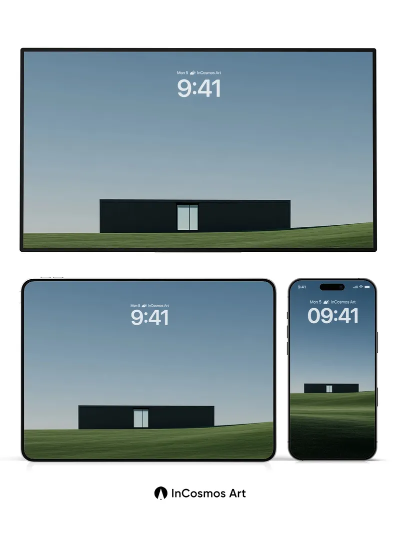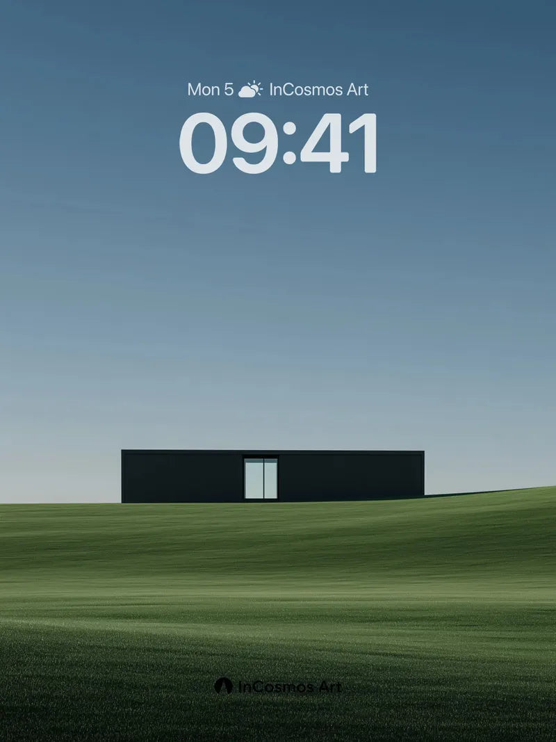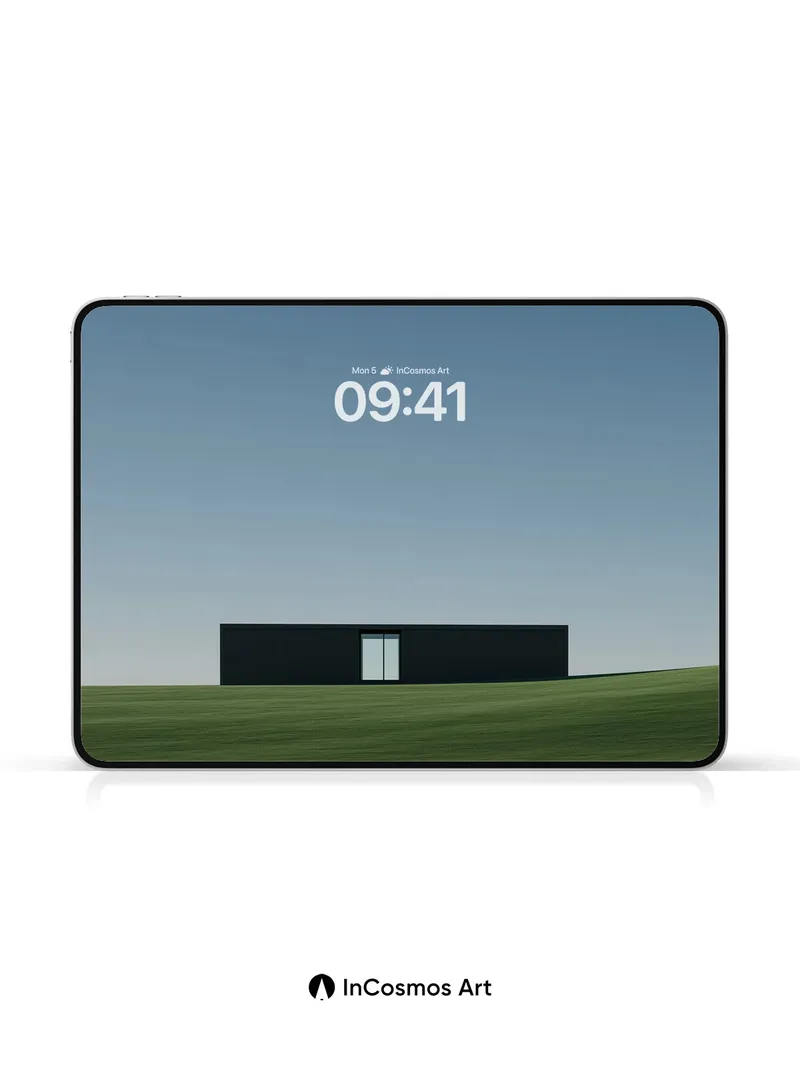 Debug page_description: Did you know the longest straight line on Earth is visible only from space? Here, a monolithic black form floats above an endless green field, its single glass portal reflecting the sky like a mirror of stillness. The grass breathes in soft waves beneath a gradient sky that deepens into twilight, while light crawls across the structure’s surface like time itself slowing down. Share this with your best friend. Send this to your love and swap a matching set. What if silence had a shape?
