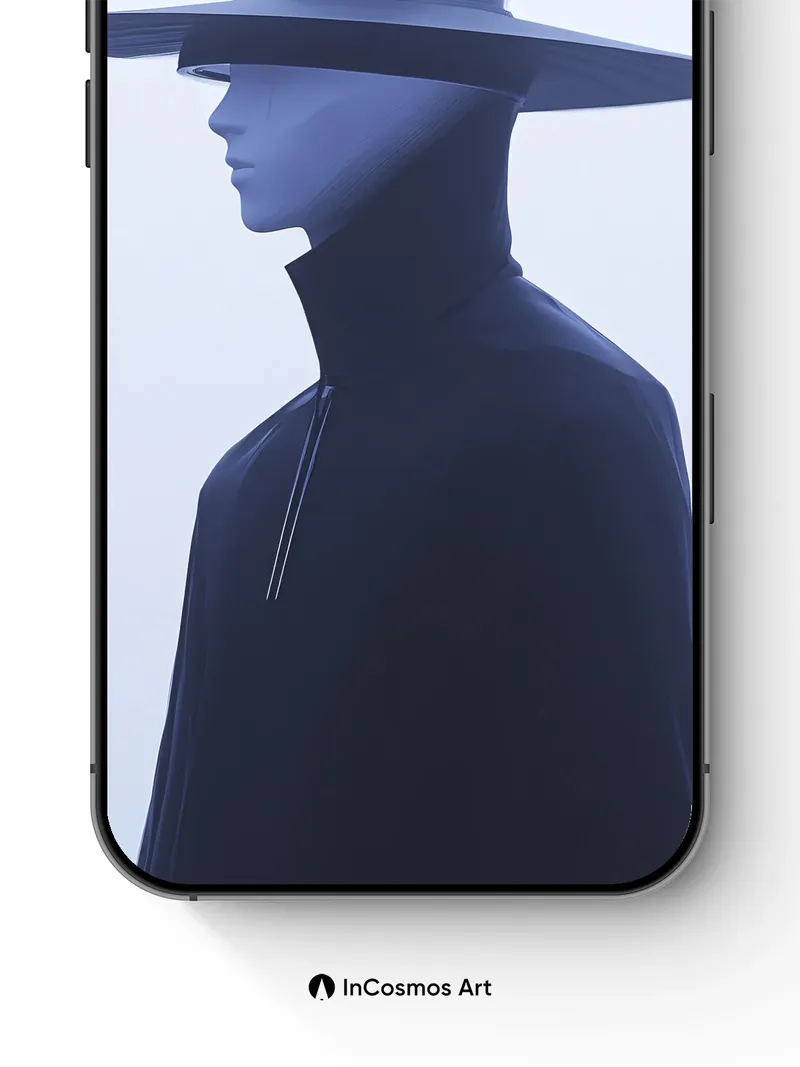Debug page_description: Did you know the human eye can detect over a million colors, yet this monochrome figure feels like a whisper of light on velvet? The wide-brimmed hat hovers just above the head, as if caught in a breeze that doesn’t exist, casting no shadow—only silence. You’re not looking at a person, but a memory made solid, draped in midnight fabric that breathes with each glance. Share this with your best friend. Send this to your love and swap a matching set. What if stillness could wear a hat?