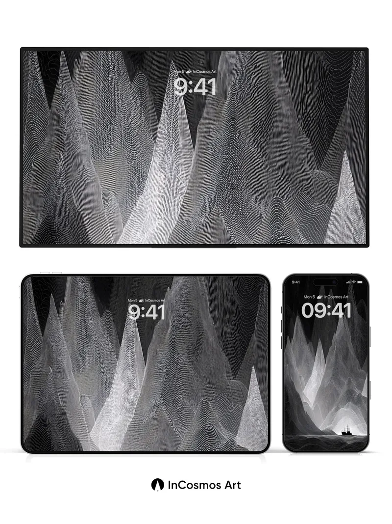Silent Peaks Wallpaper with Whispering Lines