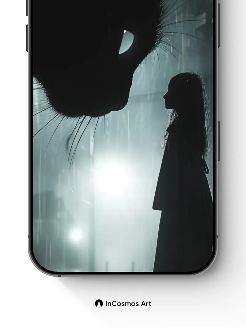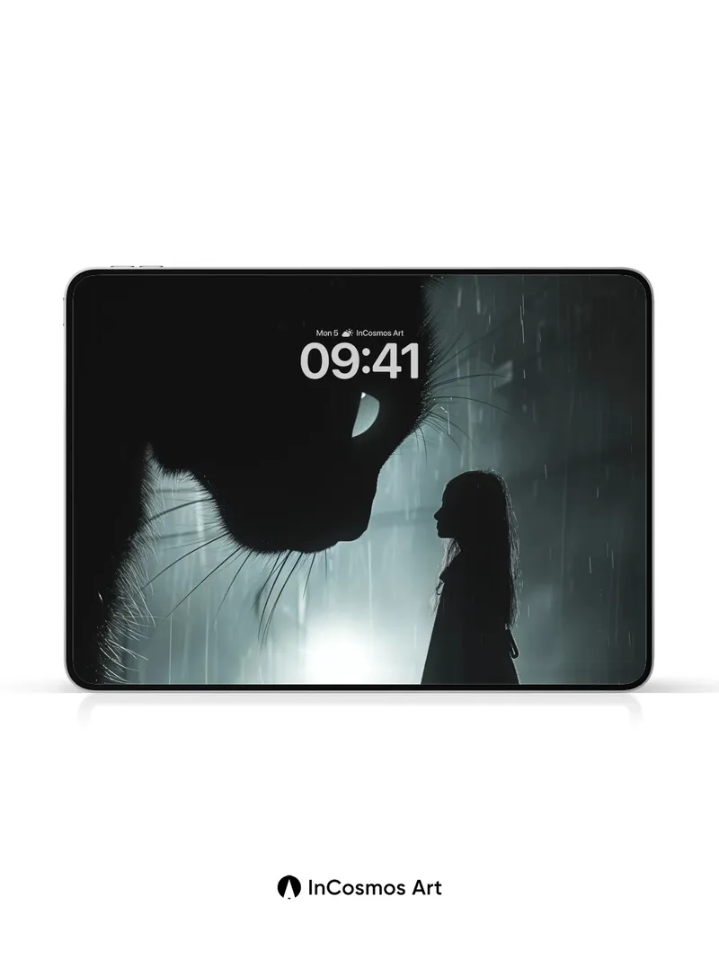 Silent Rainfall Wallpaper with Giant Cat Shadow