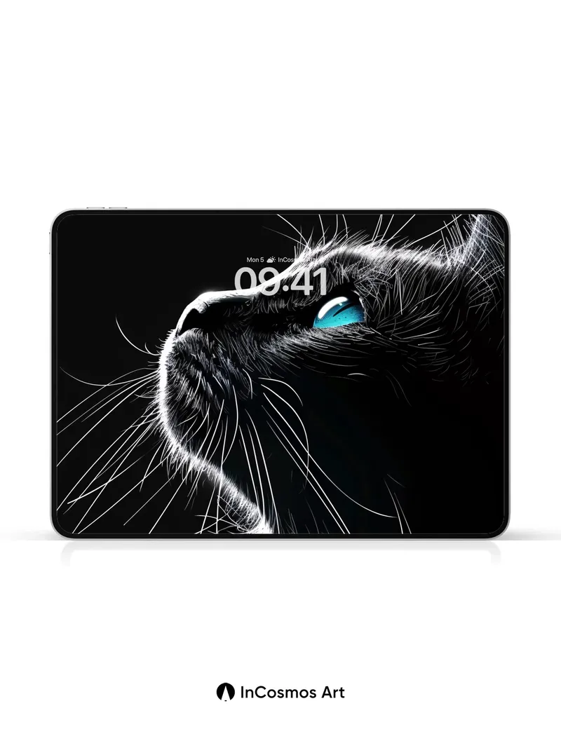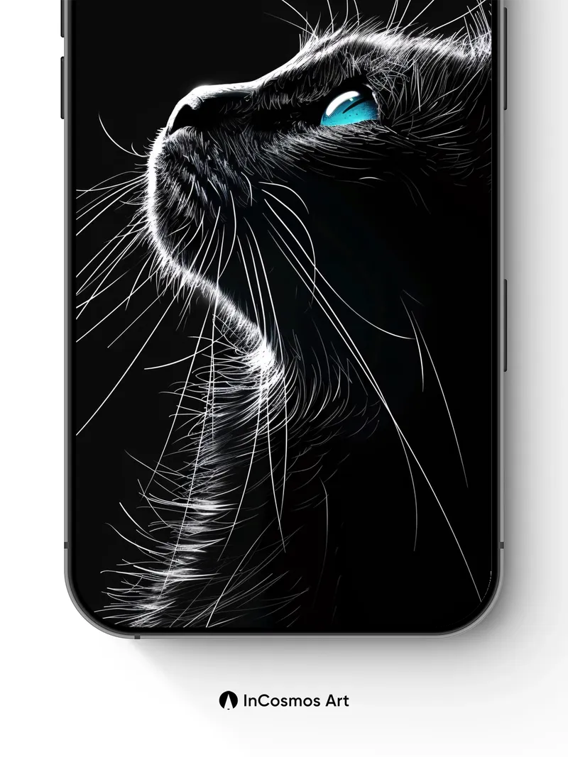Debug product.metafields.custom.desc: Did you know that cats can see in near total darkness, their pupils dilating to capture the faintest light? This image captures a black feline’s profile, its fur rendered in stark contrast against void, each whisker a fine silver thread catching the edge of unseen illumination. The single turquoise eye glows like a frozen star, piercing through the silence. It’s not just an animal—it’s a guardian of night, a myth made real by light and shadow.