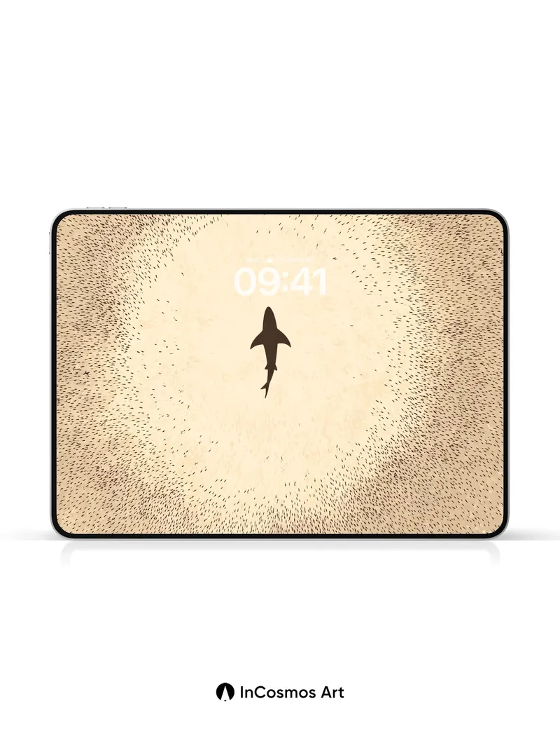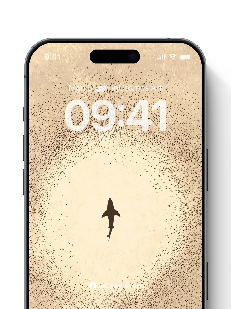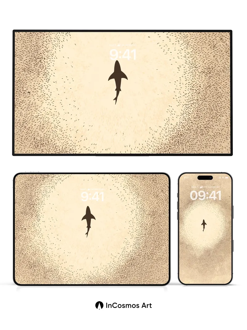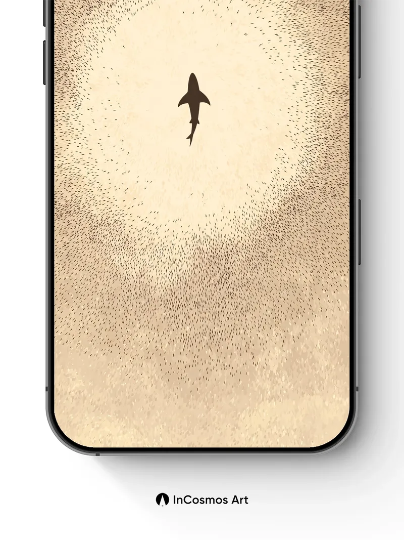 A lone shark silhouette cuts through a beige haze, surrounded by a halo of scattered dots that feel like suspended dust or distant stars. Did you know that sharks have been around for over 400 million years, surviving multiple mass extinctions? This minimalist composition turns the ocean’s apex predator into a quiet, almost meditative presence, balancing tension with serenity. Share this with your best friend. Send this to your love and swap a matching set. What secrets does the deep hold when no one is watching? The full resolution of this artwork/wallpaper is 4320 × 7708, with a file size of 4.80 MB MB. Image in App code: cn6652 1080:1927 Applicable to mobile phones. This product only contains one wallpaper, other wallpapers in the multi-device effect preview need to be purchased separately. Download Information The download link will be on the “Thank You” page once payment is completed. Most wallpaper themes can be instantly downloaded once payment is processed. Few wallpaper backgrounds will generally be processed and sent within 48 hours to your email inbox as our team must confirm that patterns, quality, and links are in proper working order before shipping.