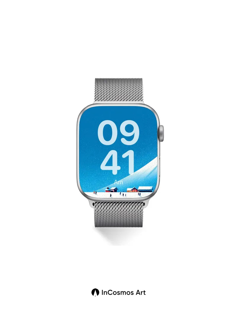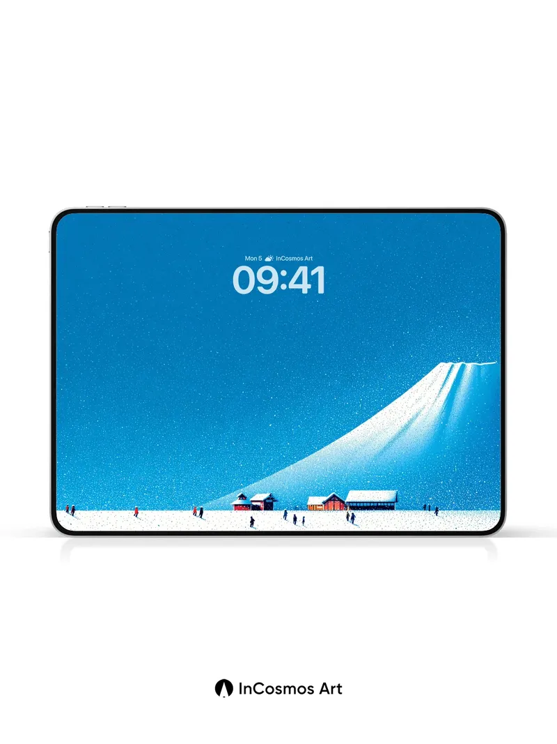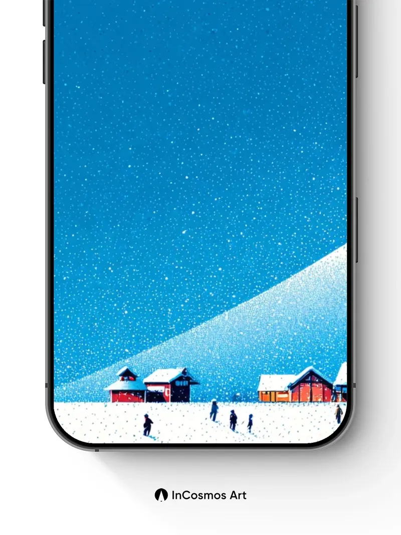 Debug product.metafields.custom.desc: Did you know snowflakes form unique crystalline patterns in under two minutes? Here, each flake seems to hang suspended in a breath of frozen air, catching the pale blue glow that spills over the mountain’s spine like liquid glass. The red roofs of tiny cabins blink like distant embers beneath an endless sky, where light doesn’t fall—it crawls across the snow, soft and slow, as if time itself is sleeping.