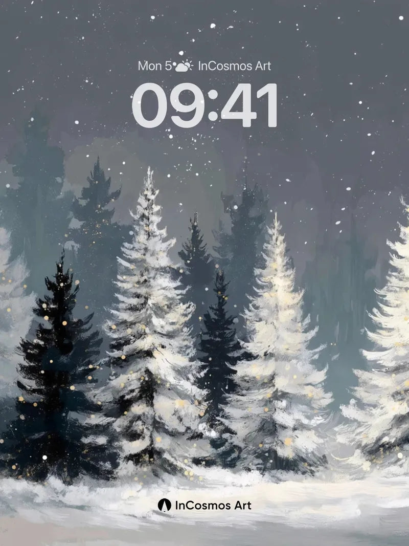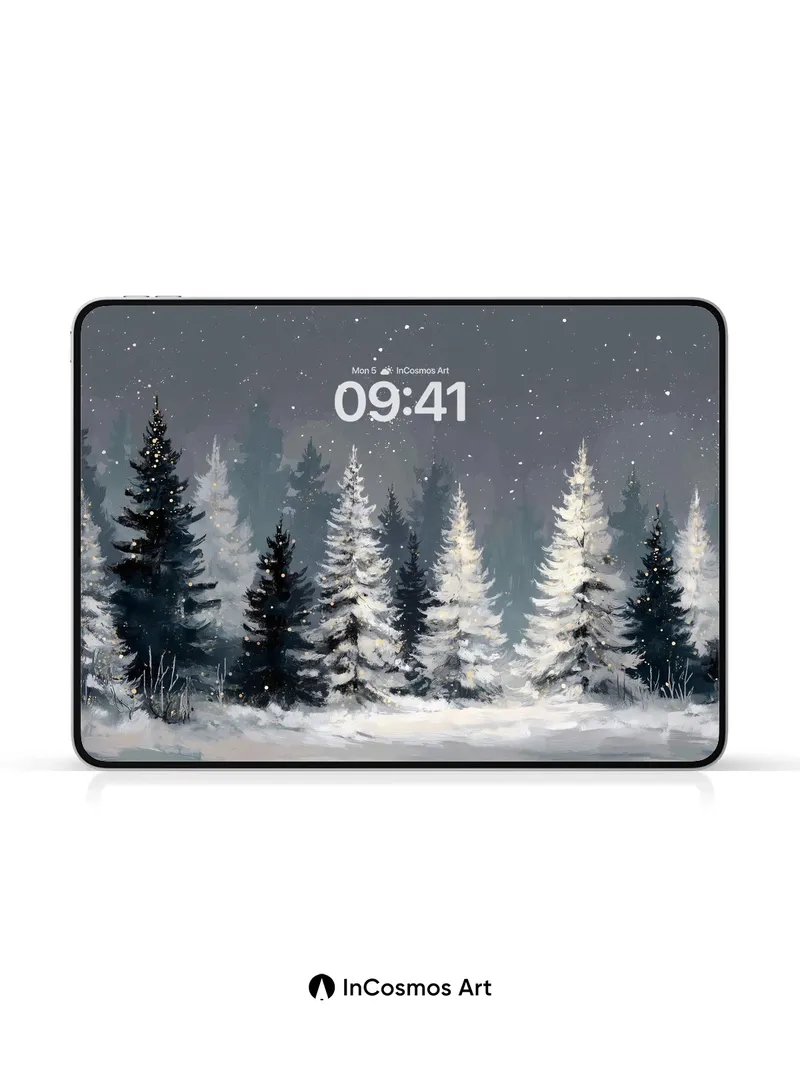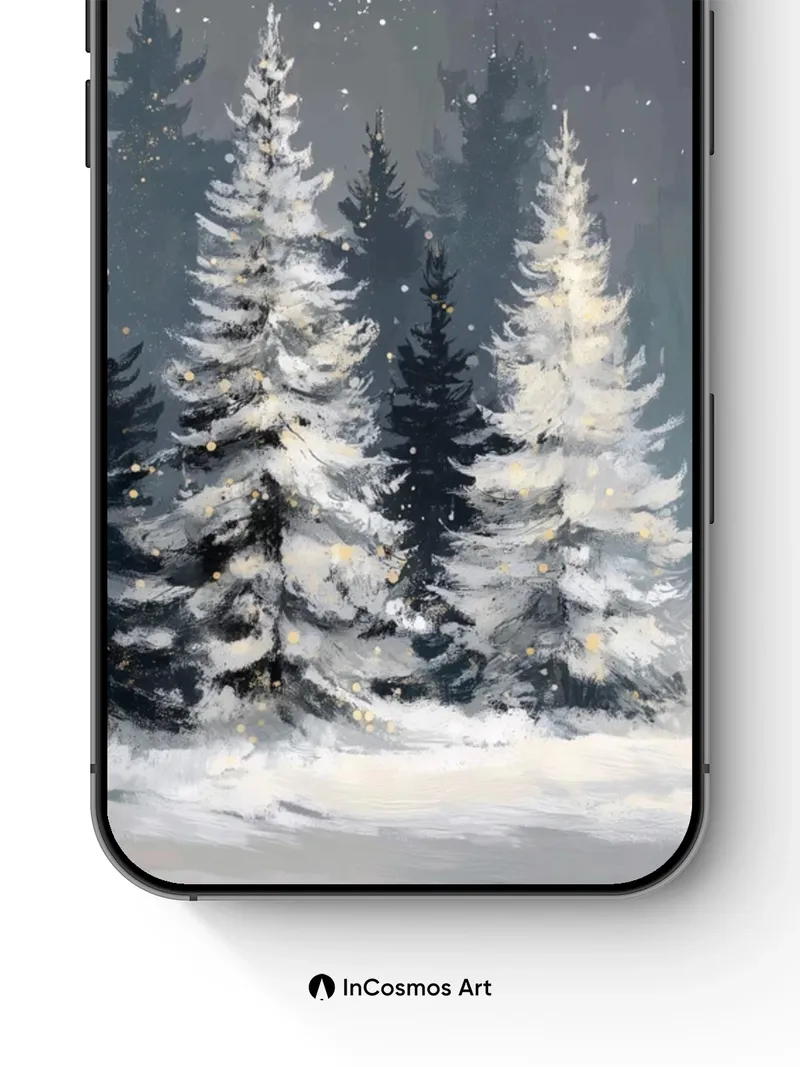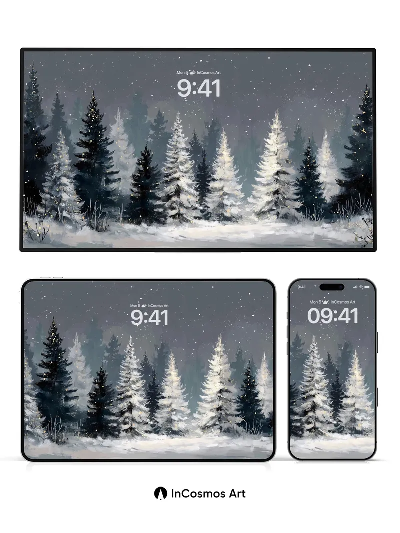 Silent Snowfall Wallpaper with Frost-Laced Pines