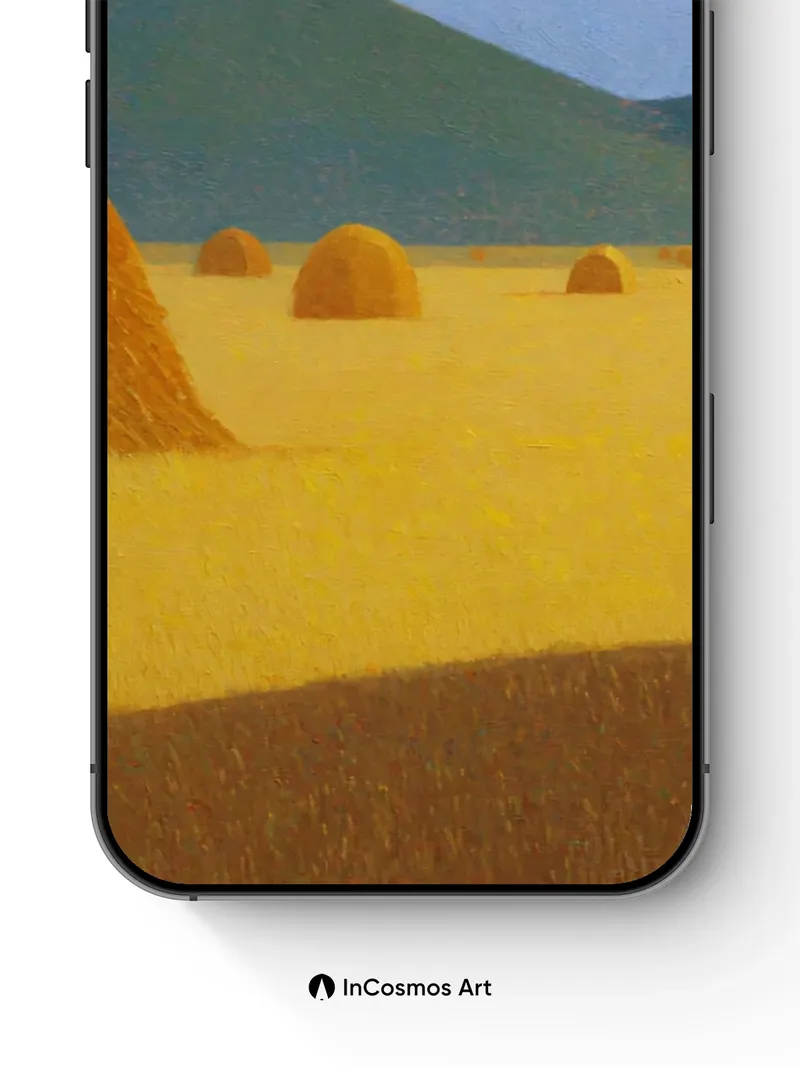 Debug product.metafields.custom.desc: Did you know that hay bales in rural landscapes can last up to five years when properly stacked? Here, they rise like ancient monuments under a hush of twilight sky, their golden curves glowing as if lit from within. A lone black cat sits motionless on the ridge, its silhouette carved by the fading light—a quiet sentinel between earth and mountain, where stillness speaks louder than sound.