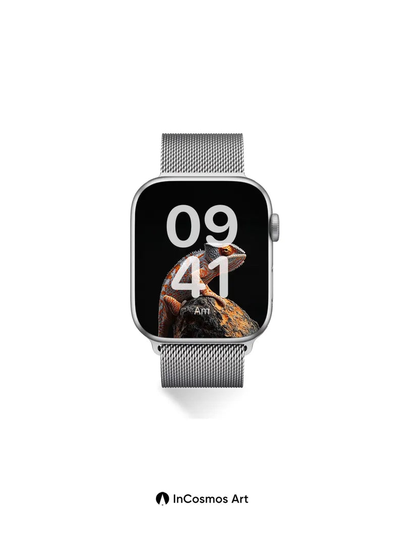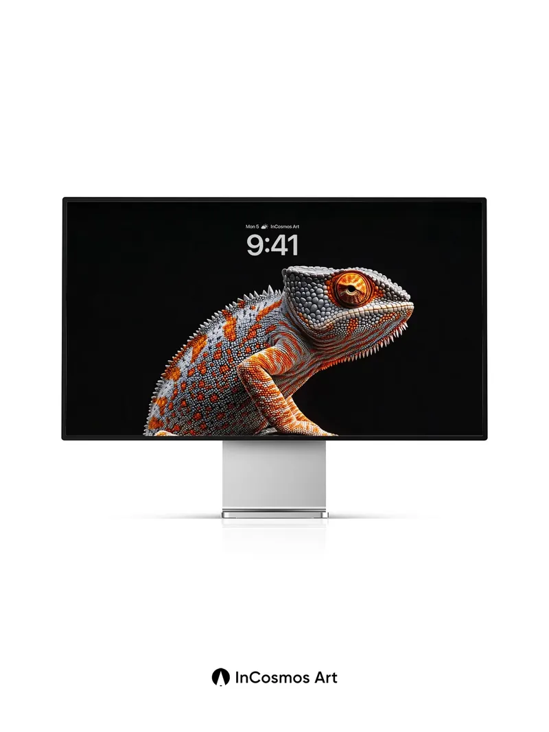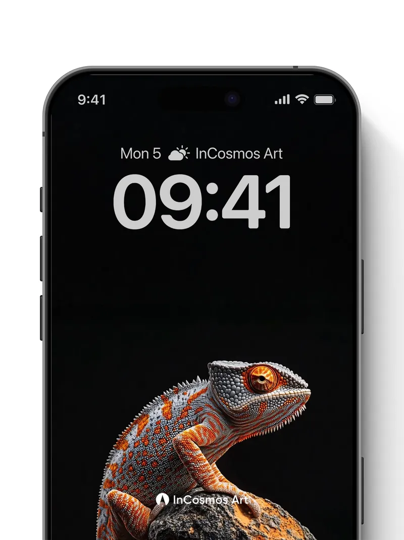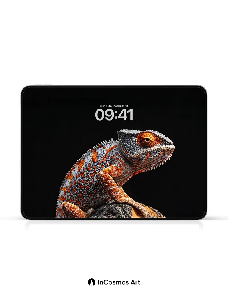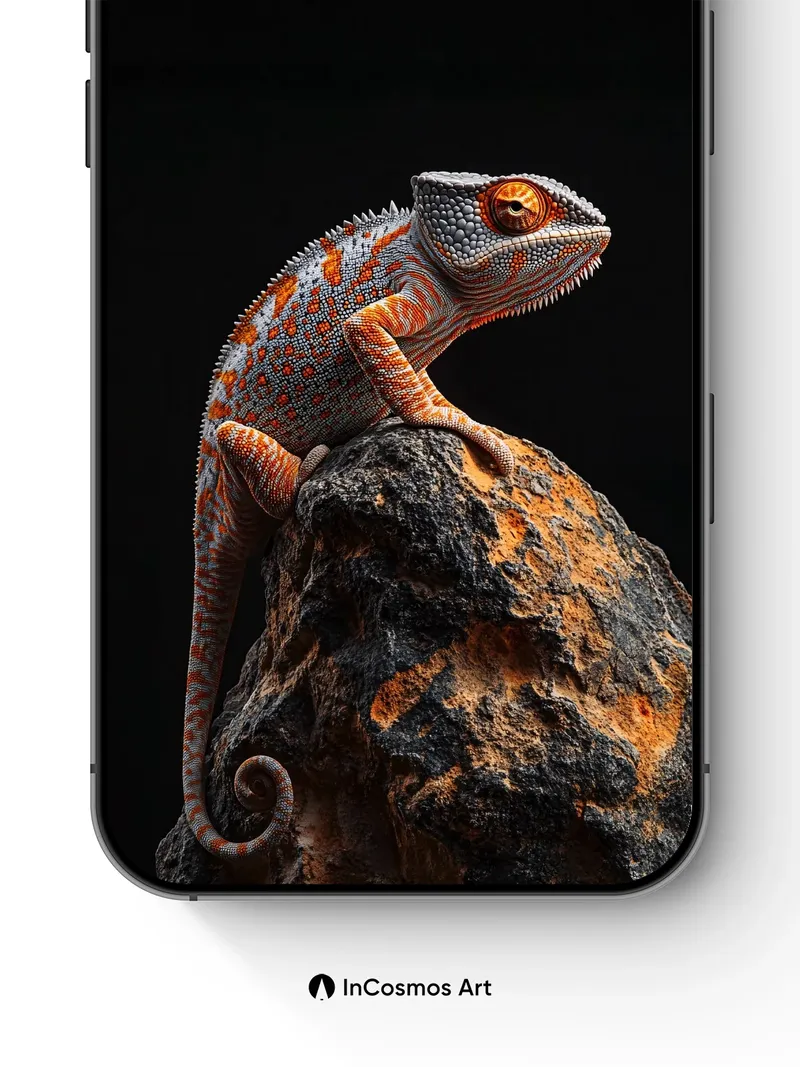 Debug product.metafields.custom.desc: Did you know chameleons can change color not just for camouflage, but to communicate mood and temperature? This one perches like a sentinel, its skin a mosaic of rusted copper and frost-gray, each scale catching the light like tiny mirrors. Its eye—golden and unblinking—seems to hold the weight of ancient deserts, watching your world from a quiet ledge of volcanic stone.