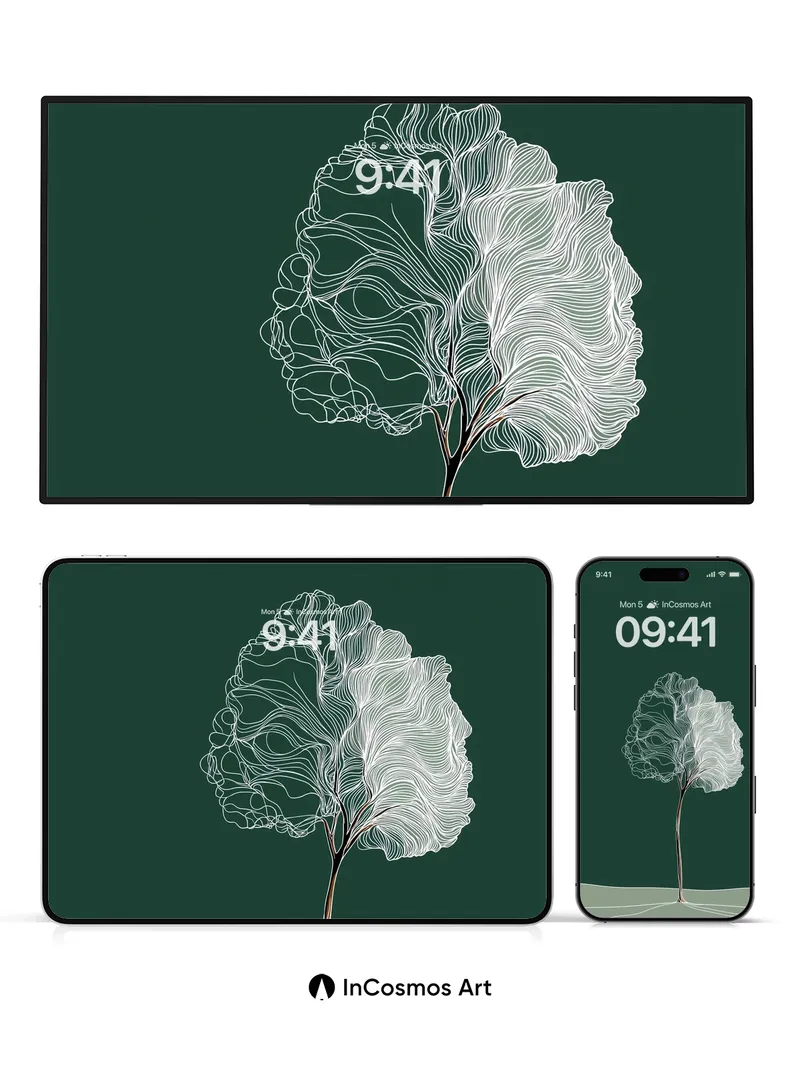 Silent Whispers Tree Wallpaper with Ethereal Lines