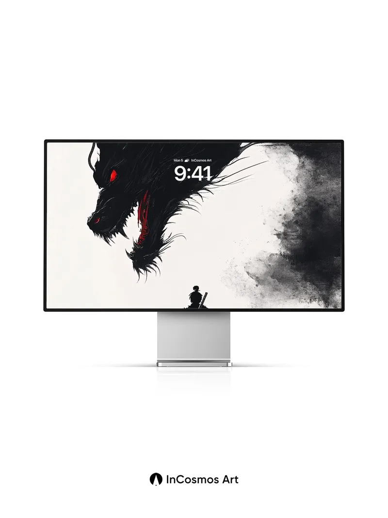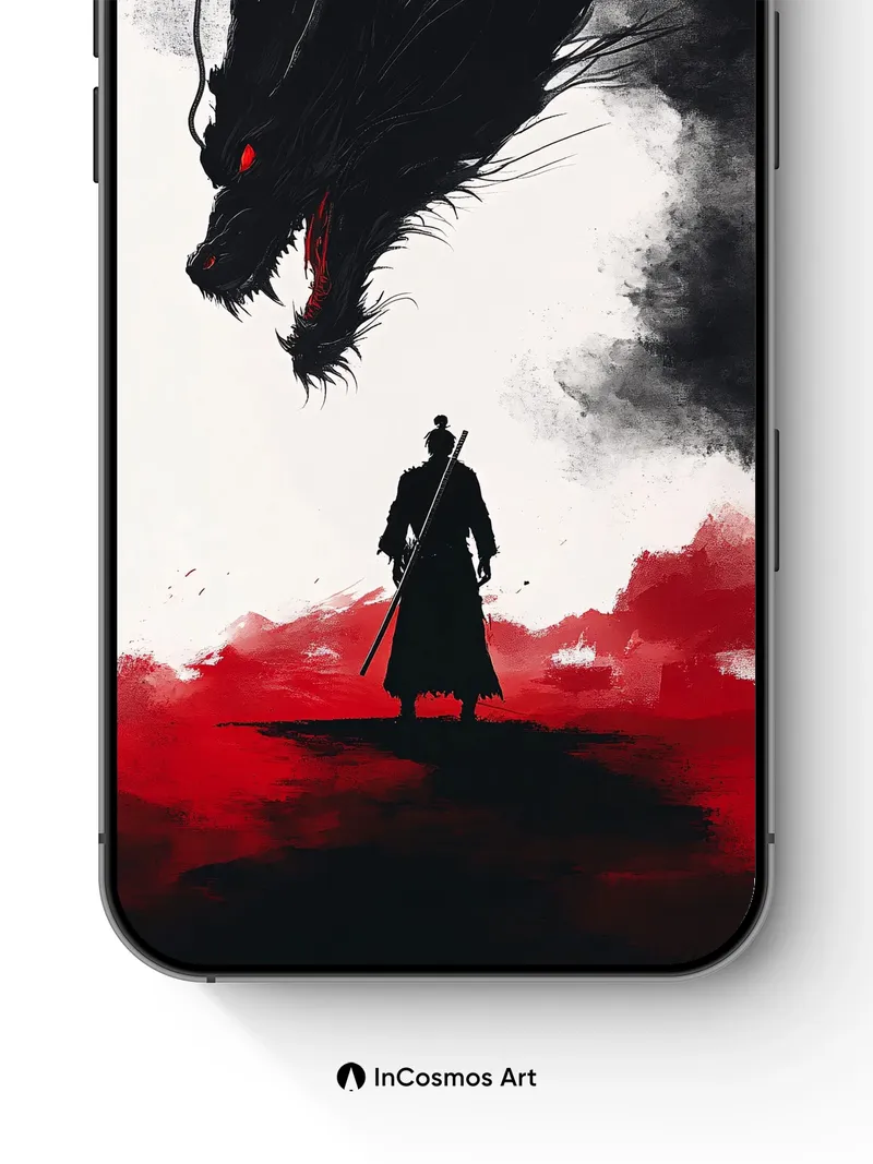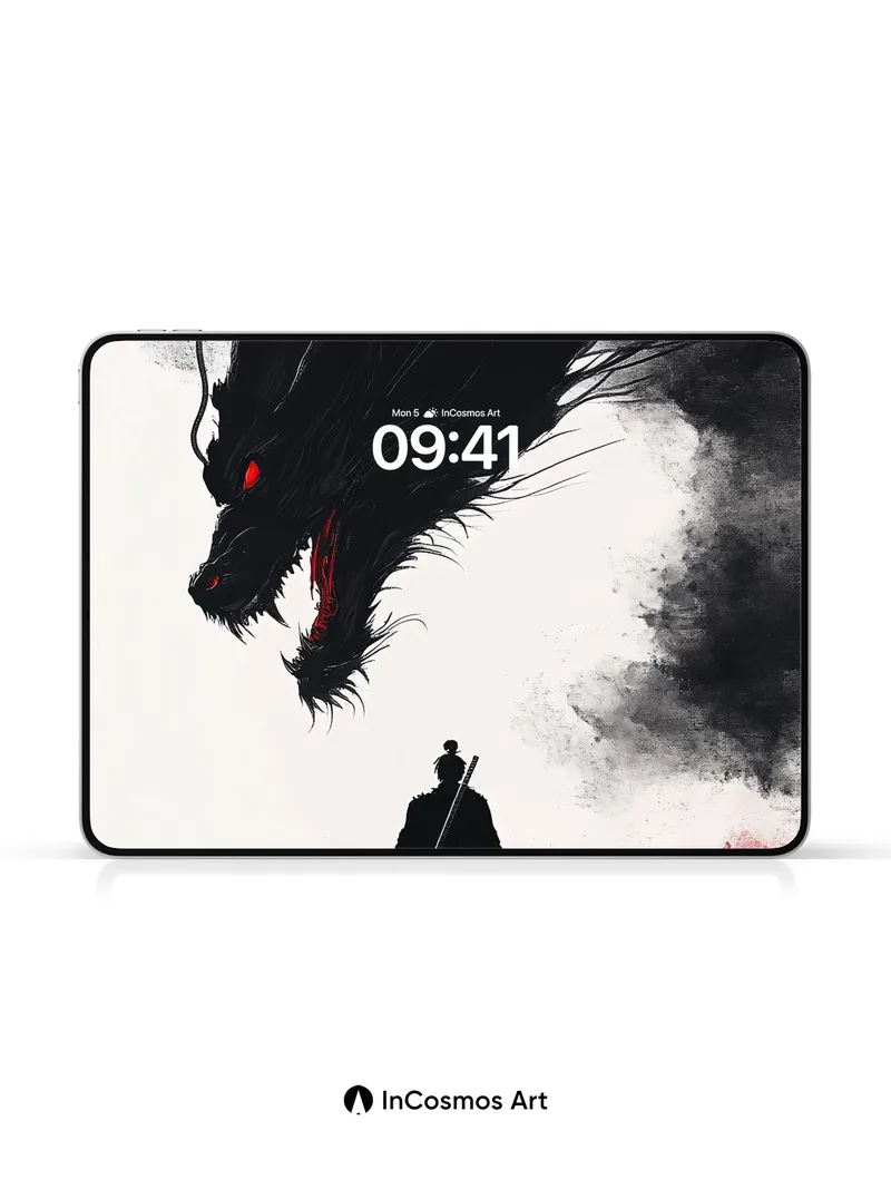 Silhouette Dragon Battle Wallpaper with Ink Storm