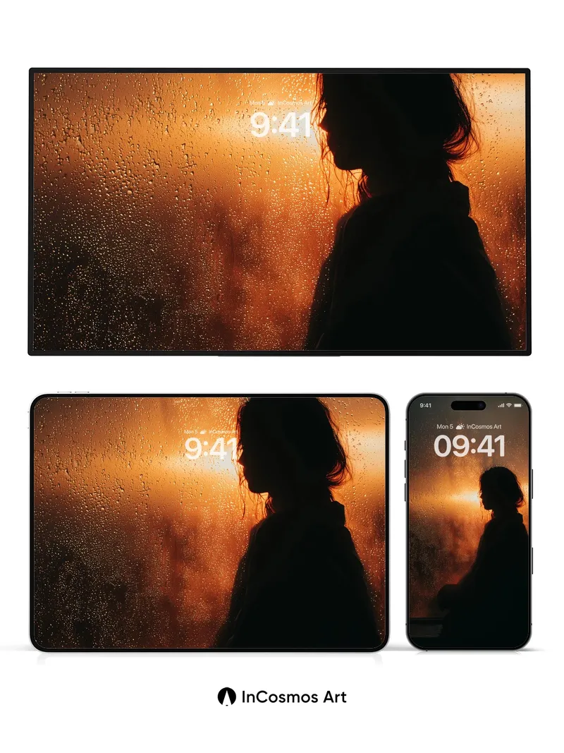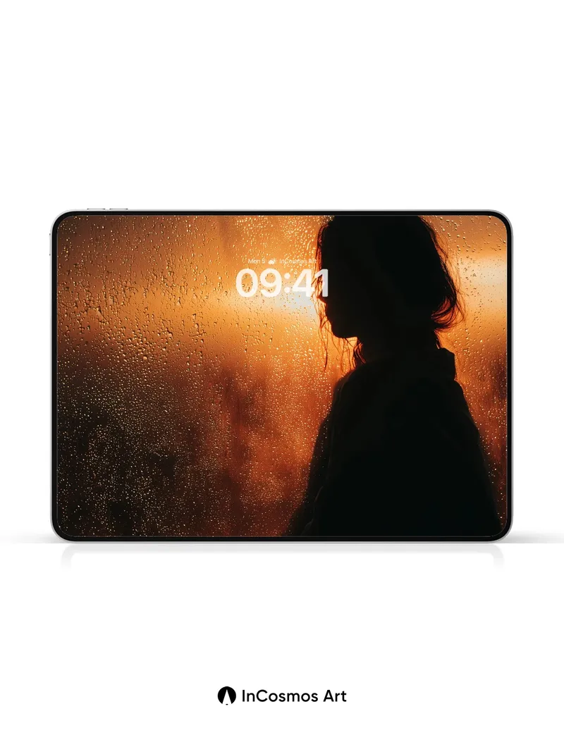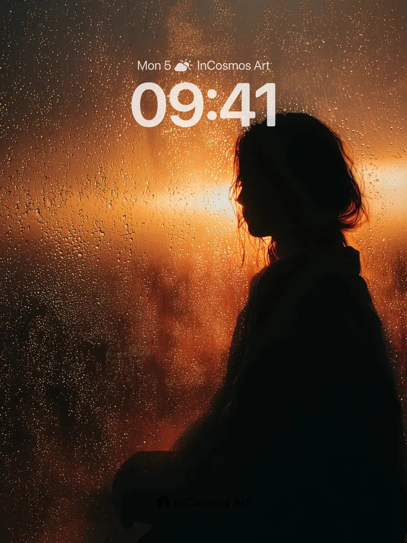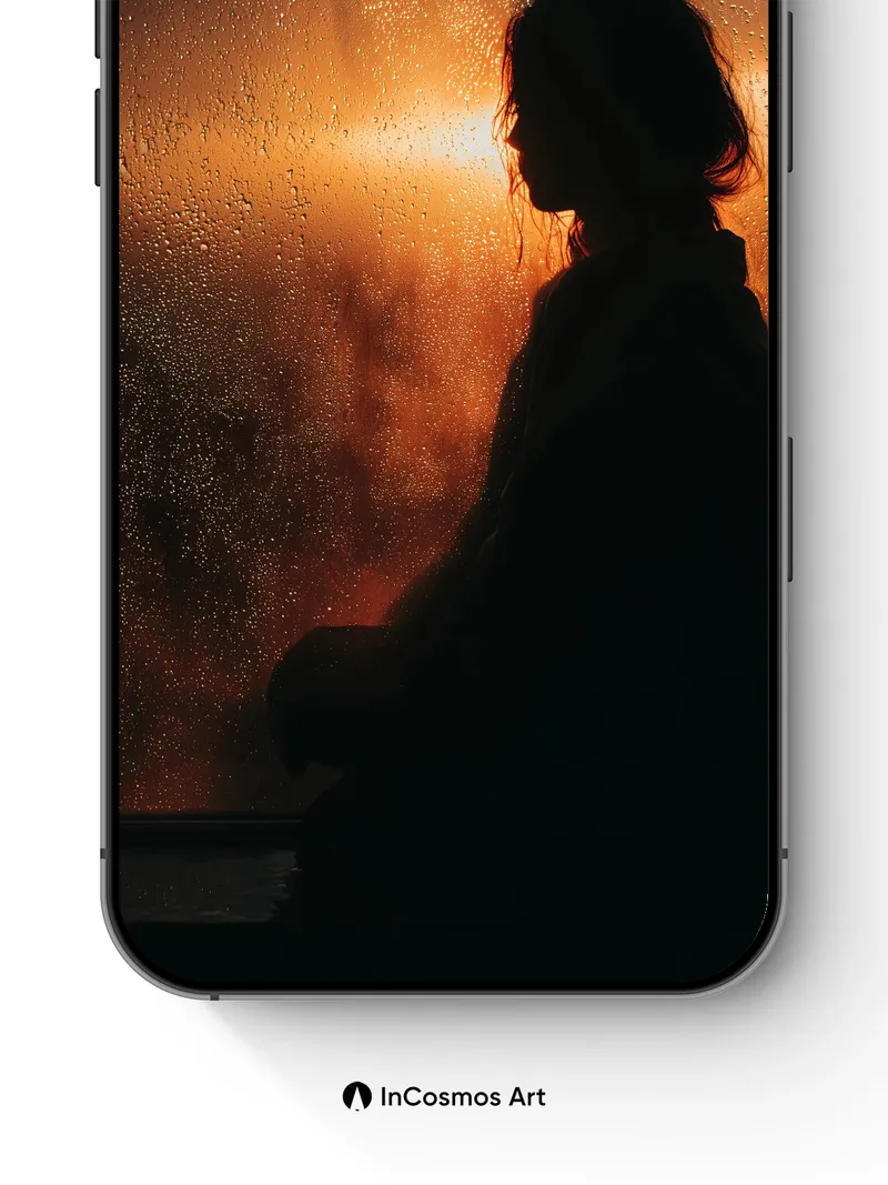 Silhouette Reverie Wallpaper with Rain-Streaked Glass