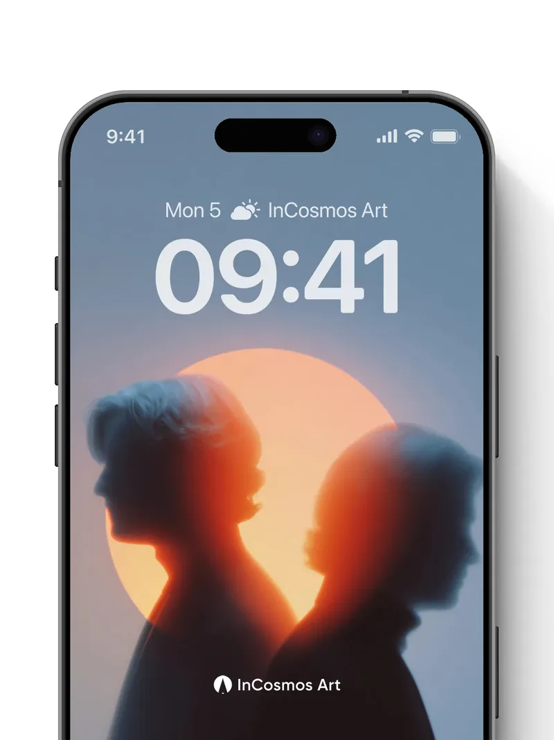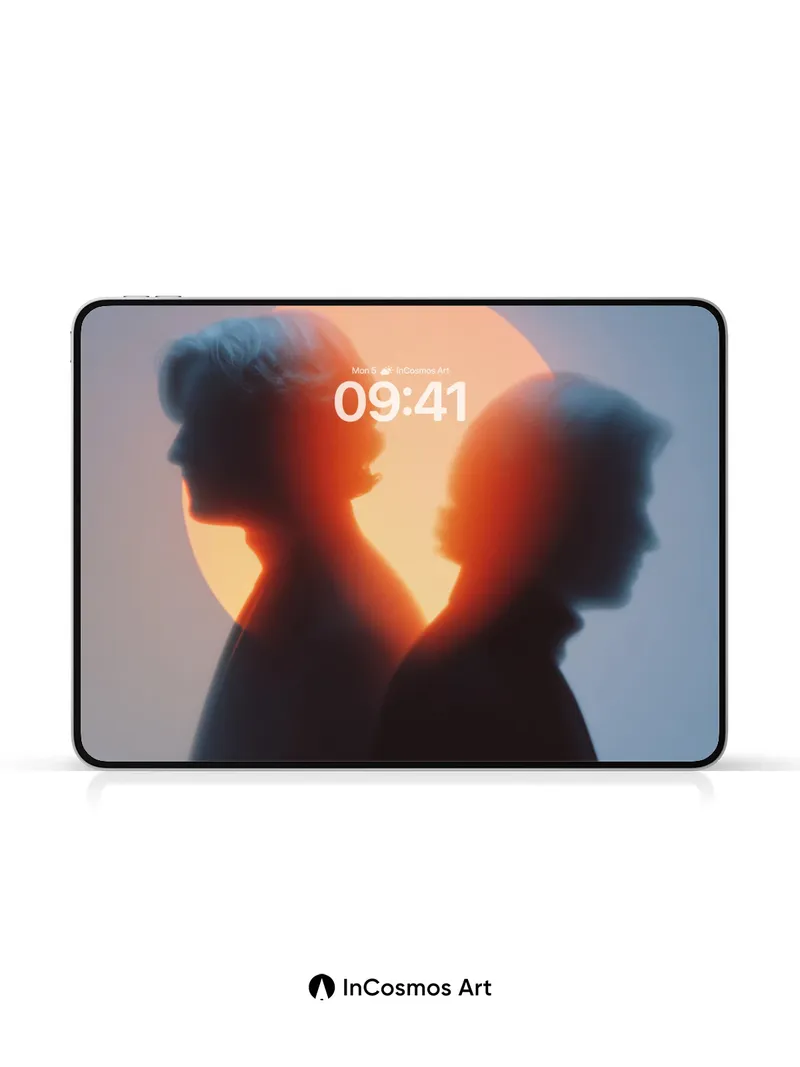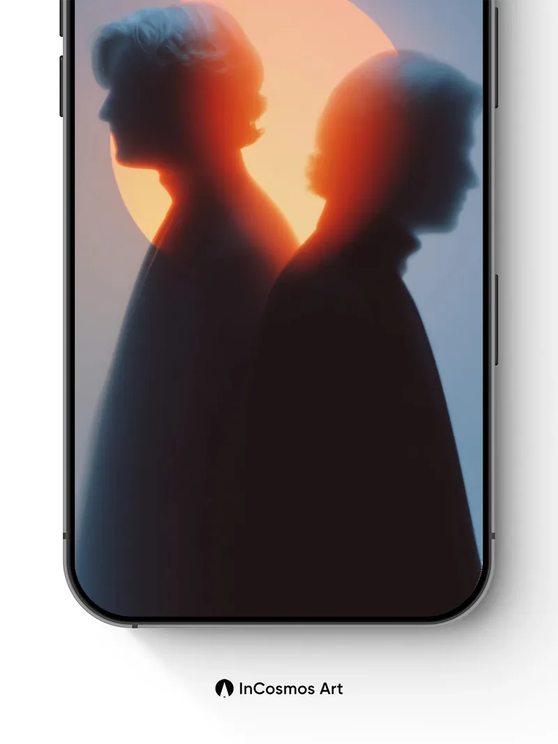 Silhouetted Embrace Wallpaper with Celestial Halo