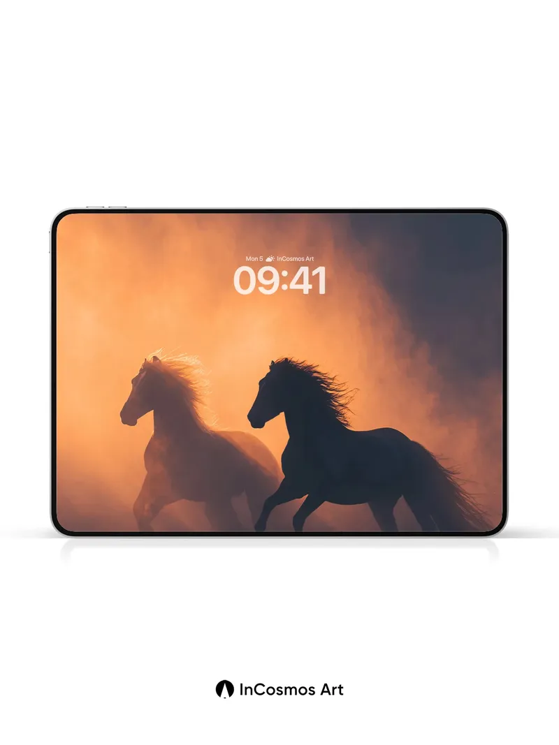 Silhouetted Gallop Wallpaper with Dust Storm Aura