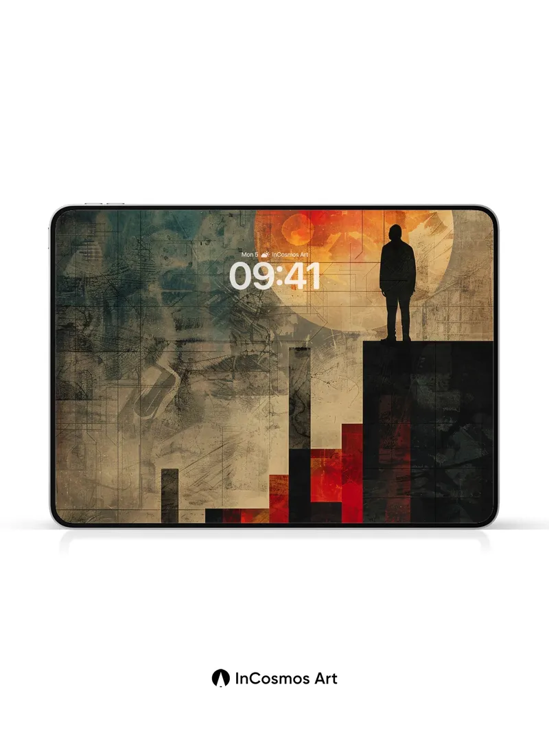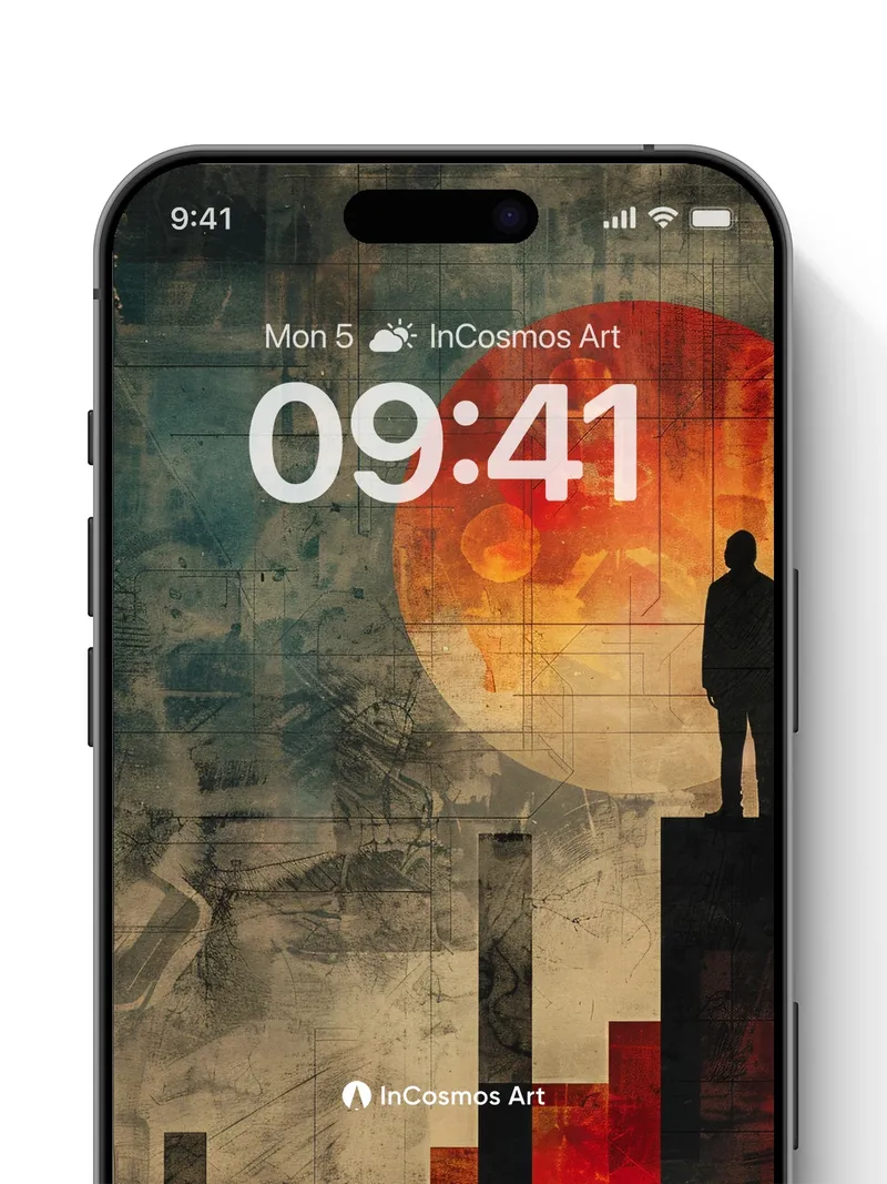Debug product.metafields.custom.desc: Did you know ancient astronomers once believed the sun was a burning eye watching over Earth? Here, it pulses like a molten coin behind a lone figure standing atop jagged bars of shadow and flame, where light bleeds through cracked parchment and rusted metal. The air hums with quiet rebellion—each line etched into the surface whispers of forgotten cities and futures yet to rise.