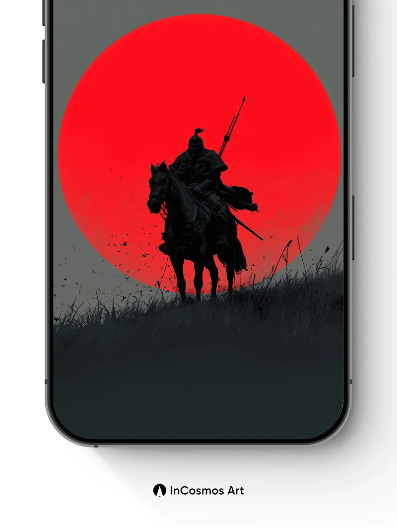 Silhouetted Knight Wallpaper with Crimson Sun