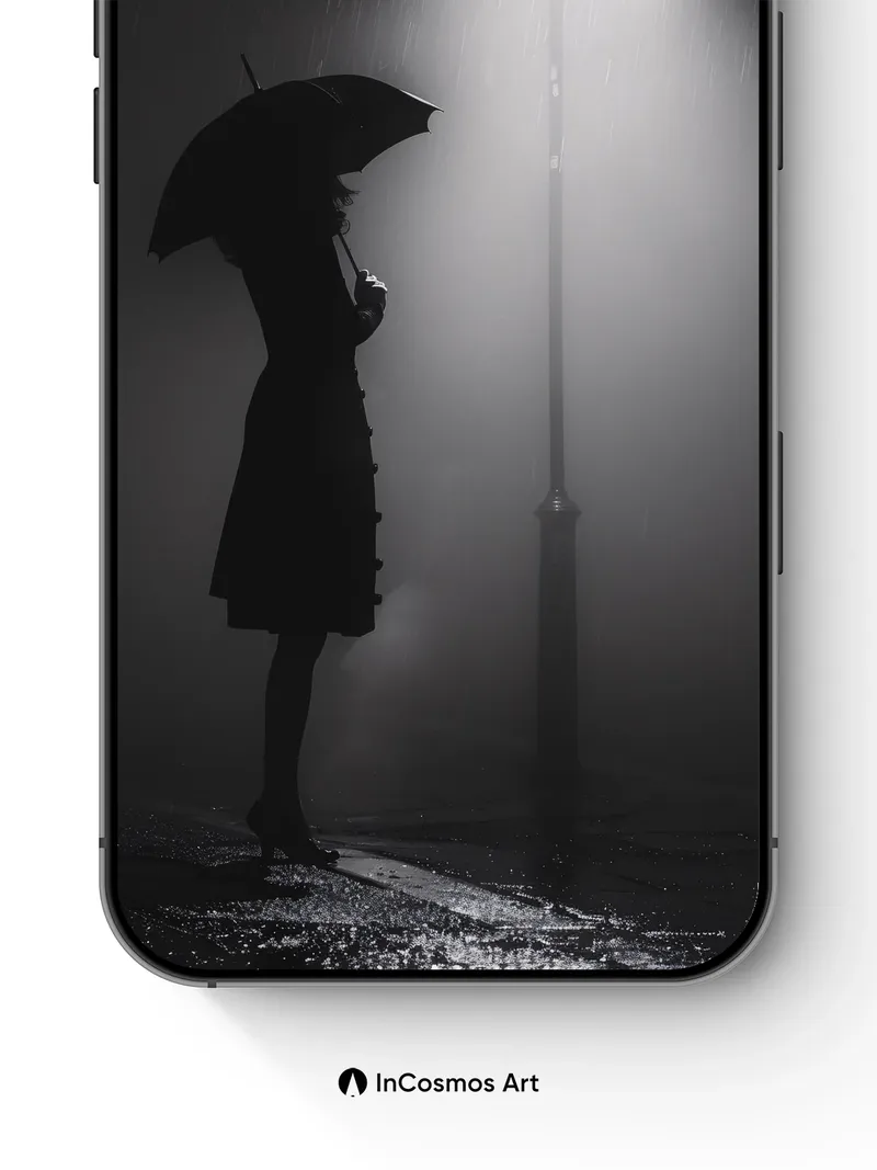 Silhouetted Rainfall Wallpaper with Streetlamp Glow