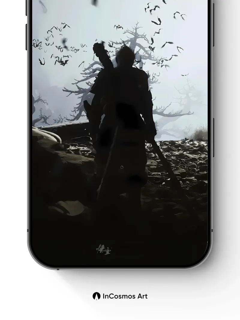 Silhouetted Wanderer Wallpaper with Flying Shadows