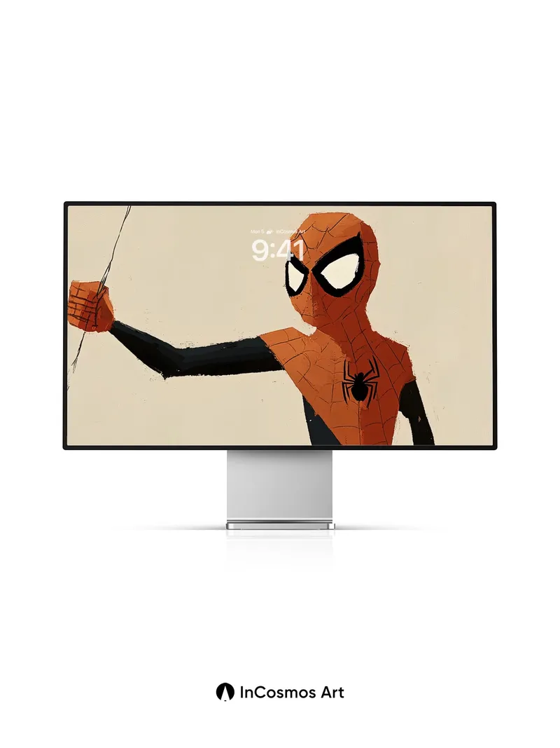 Debug product.metafields.custom.desc: Did you know the original Spider-Man suit was designed to mimic a spider’s web pattern in texture and symmetry? Here, light crawls over matte orange and black surfaces like a quiet breath, while a single strand of web stretches into the void—frozen mid-swing. The pose is poised, almost meditative, as if time itself paused for this moment of balance between action and stillness.