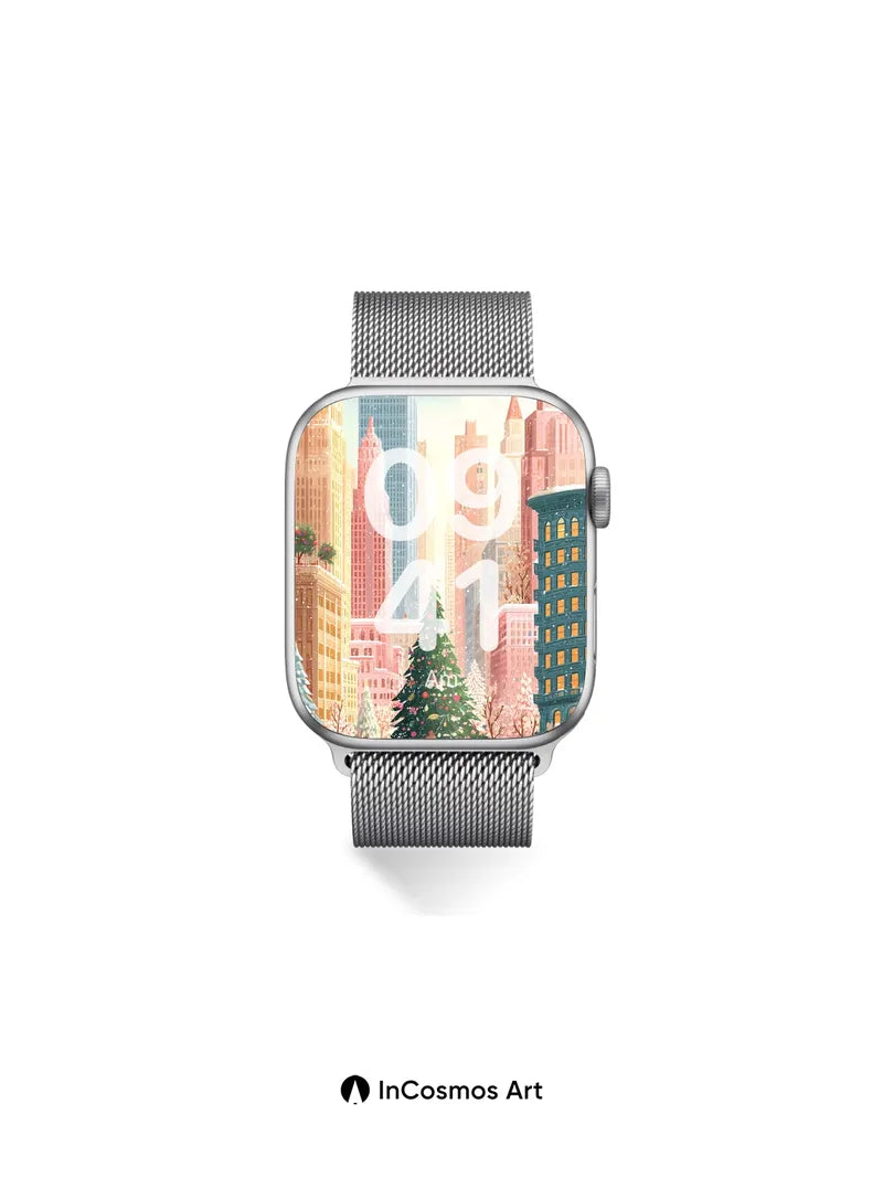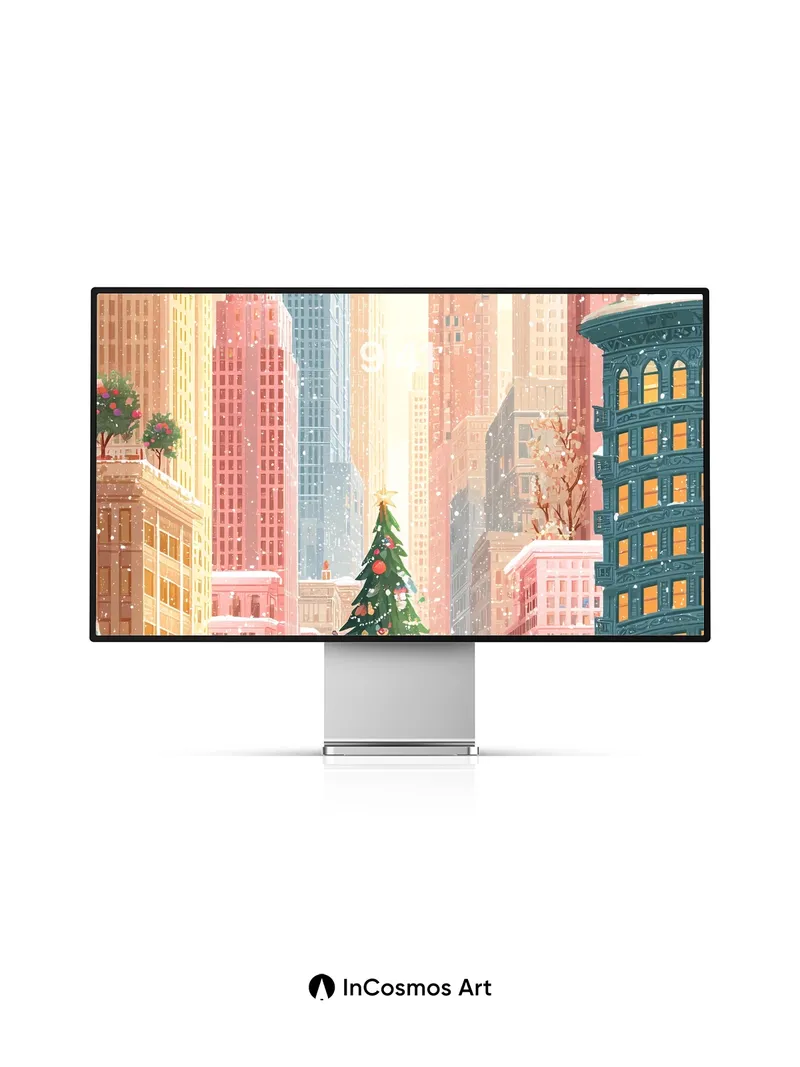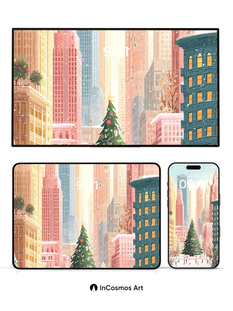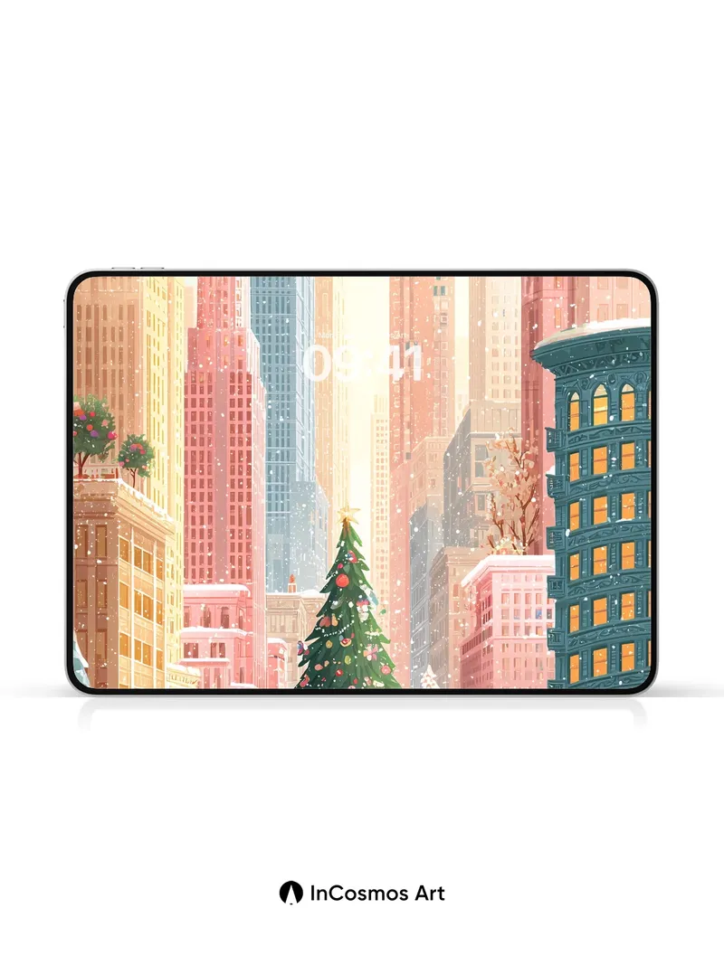 Snow-Kissed Cityscape Wallpaper with Holiday Light