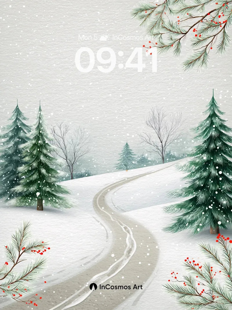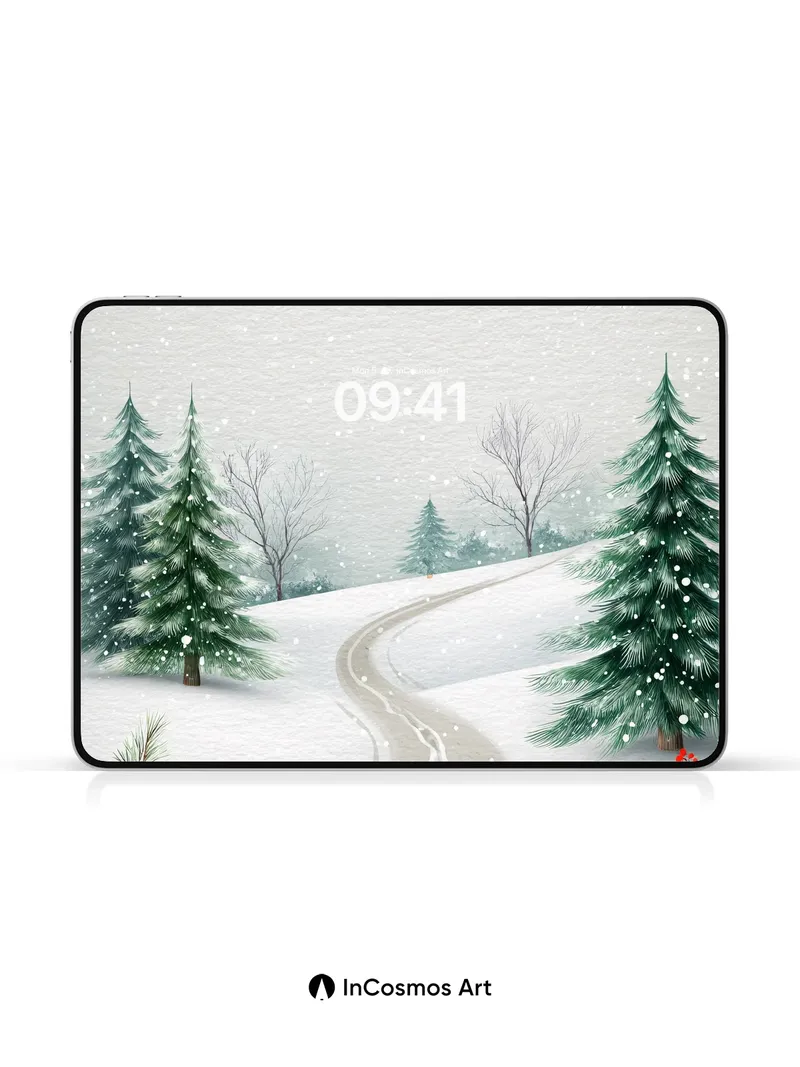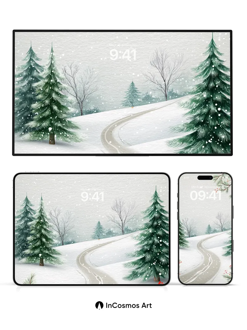 Snowfall Serenade Wallpaper with Evergreen Whispers