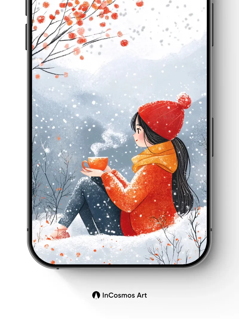 Did you know that snowflakes form unique crystal patterns in under 20 minutes, each one a fleeting sculpture of ice? You sit wrapped in crimson warmth, sipping steam from an amber cup as silent flakes drift through the air like suspended breaths. The branches above, heavy with rust-red berries, seem to glow from within, casting soft shadows across the snow. It’s not just winter—it’s a moment held still, where cold meets comfort and nature sings in hushed tones.