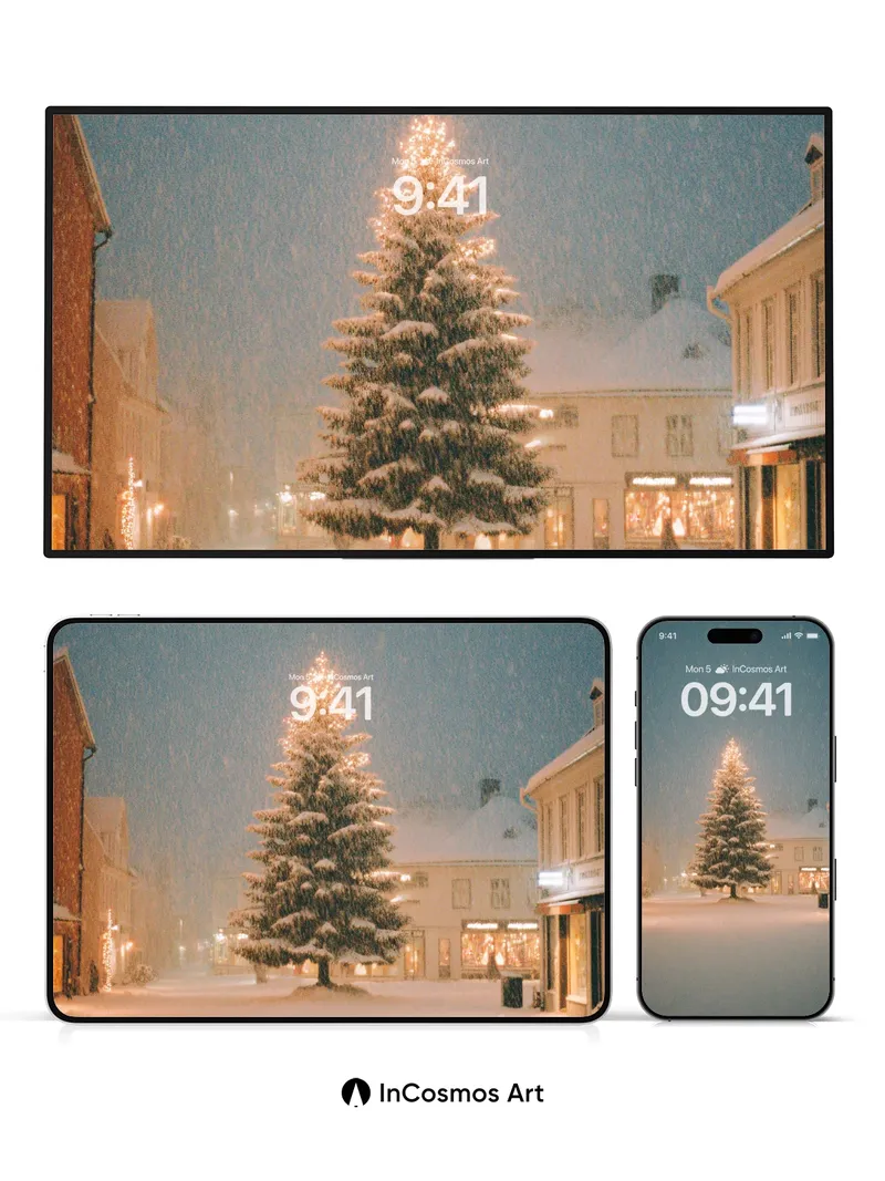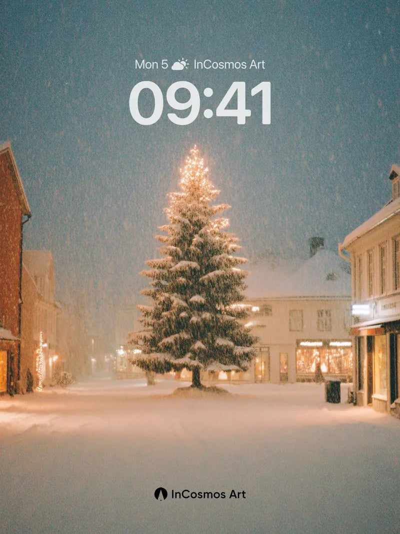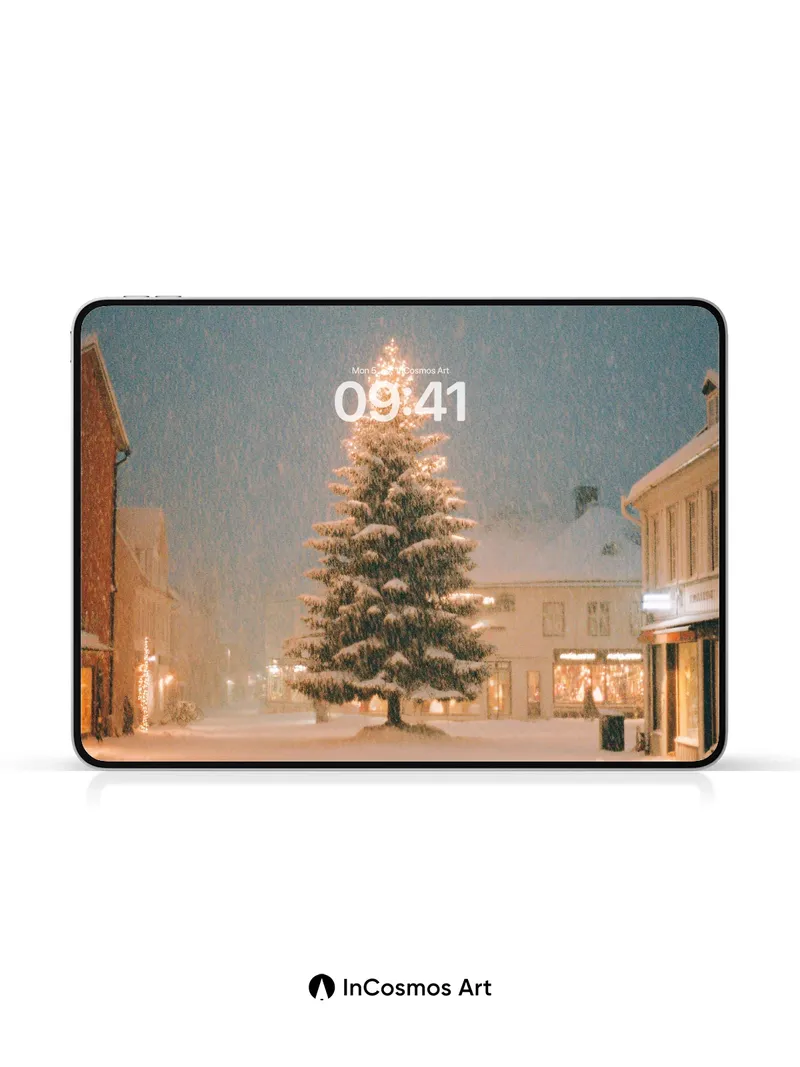 Snowfall Serenity Wallpaper with Lit Pine Center