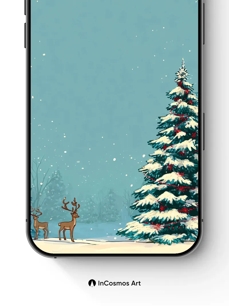 Snowfall Serenity Wallpaper with Reindeer Whispers
