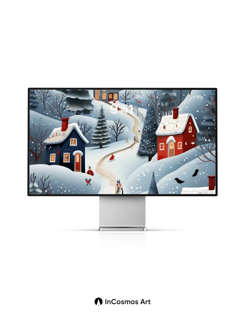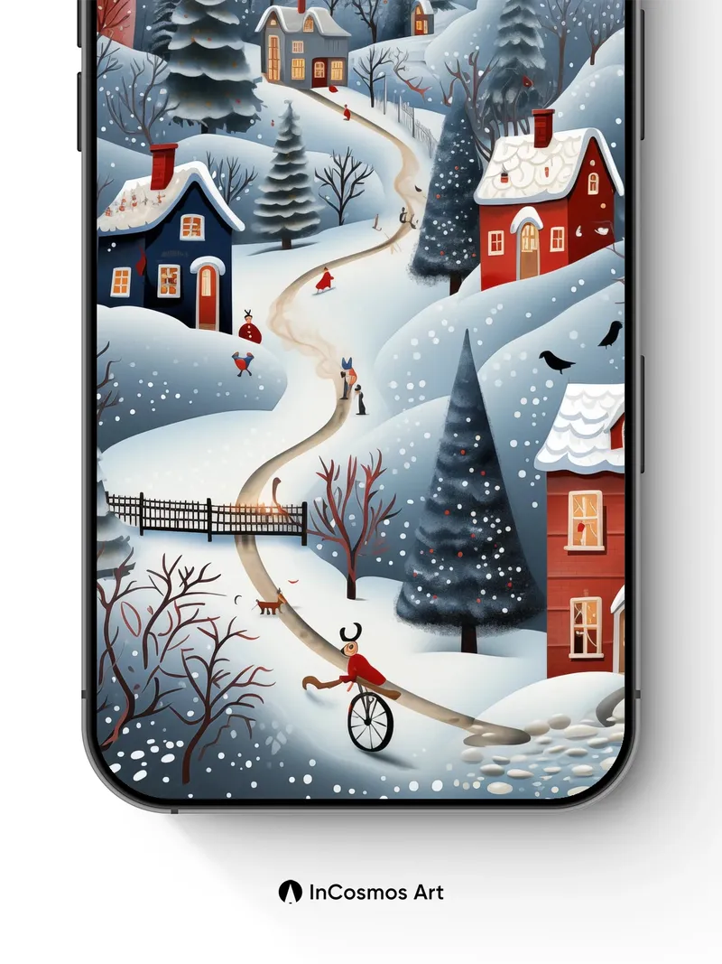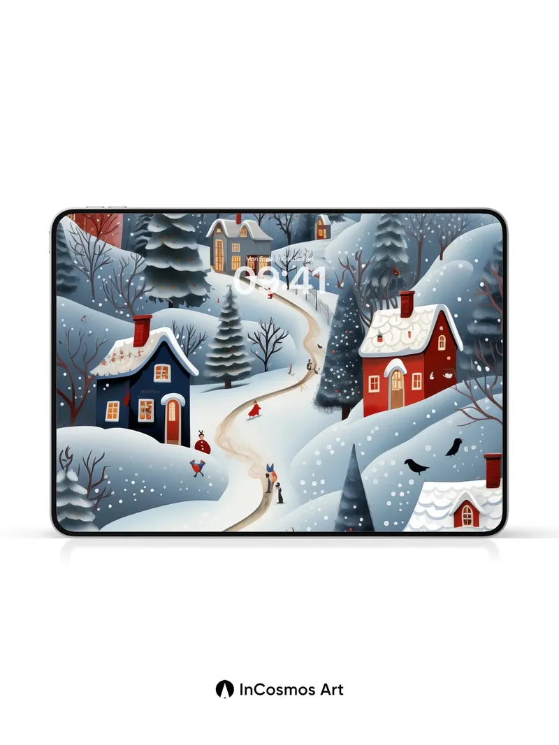 Debug product.metafields.custom.desc: Did you know snowflakes form unique hexagonal patterns as they fall through supercooled air, each one a tiny crystal sculpture? This winter village glows under a full moon, where light crawls over snow-dusted rooftops and bare branches like silent sentinels. The path winds through hills like a ribbon stitched by frost, leading to homes that breathe warmth from within.