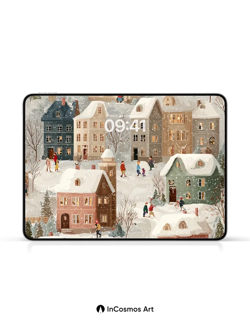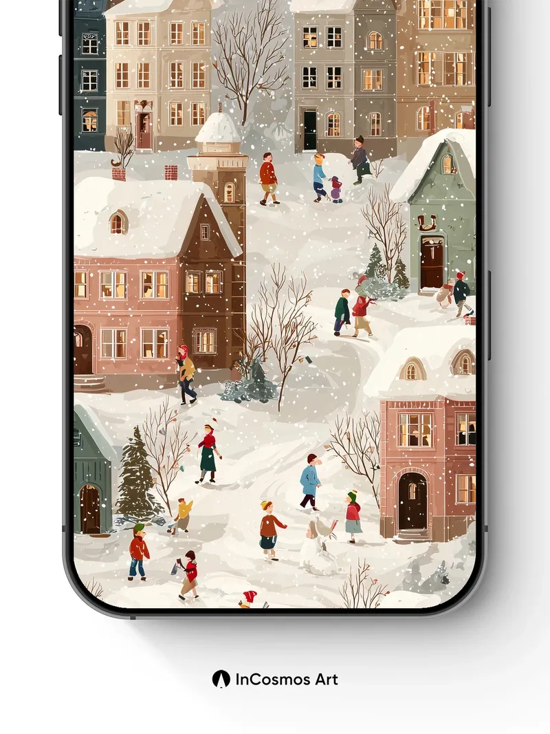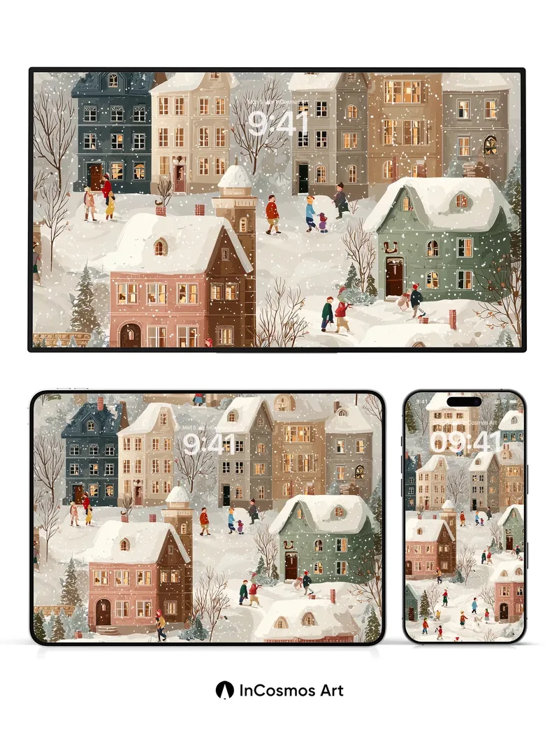 Snowfall Whispers Wallpaper with Storybook Houses