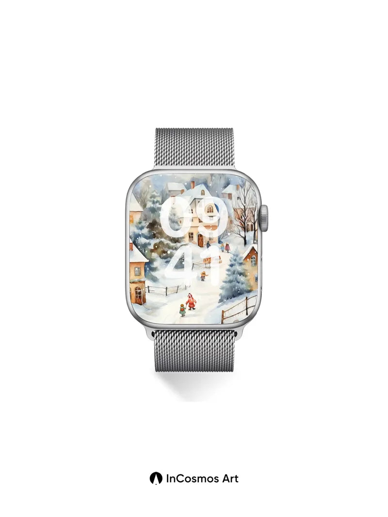 Debug product.metafields.custom.desc: Did you know snowflakes form unique crystalline patterns in microseconds, each one a tiny universe? Here, soft flakes drift like frozen breath over cobblestone paths and steep gabled roofs, where children in woolen coats leave faint trails in the hush. Light spills from warm windows, painting gold streaks on white, while bare branches etch silhouettes against a sky thick with falling stars.