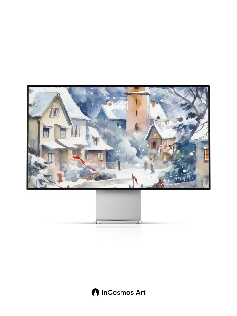Debug product.metafields.custom.desc: Did you know snowflakes form unique hexagonal patterns as they descend, each one a tiny crystalline poem? In this scene, soft flakes drift over rooftops like silent lullabies, and the golden glow from windows breathes warmth into the cool blue air. Children in bright coats trace paths through untouched powder, their laughter echoing against the hush of winter’s embrace.