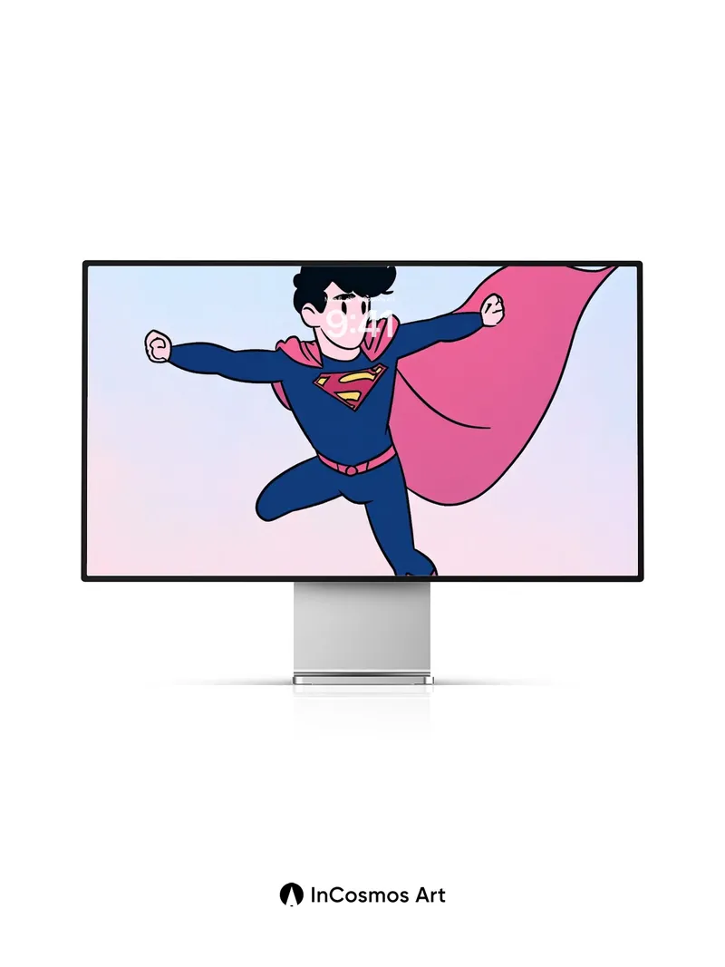 Debug og_description: Did you know Superman’s iconic red cape was originally designed to symbolize hope and strength? Here, it flares like a living flame against a sky that shifts from soft dawn to twilight, as if time itself pauses to witness his flight. The bold lines of his suit echo the clean geometry of mid-century animation, while his determined gaze pulls you into a world where courage isn’t just worn—it’s flown.