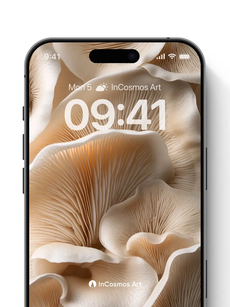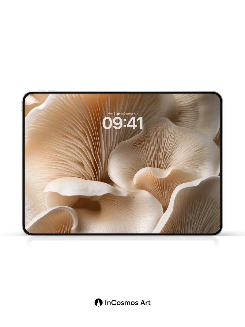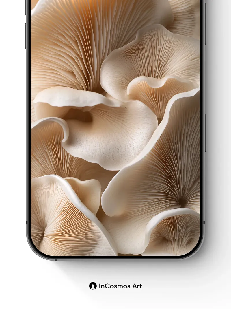 Soft Glow Mushroom Wallpaper with Delicate Folds