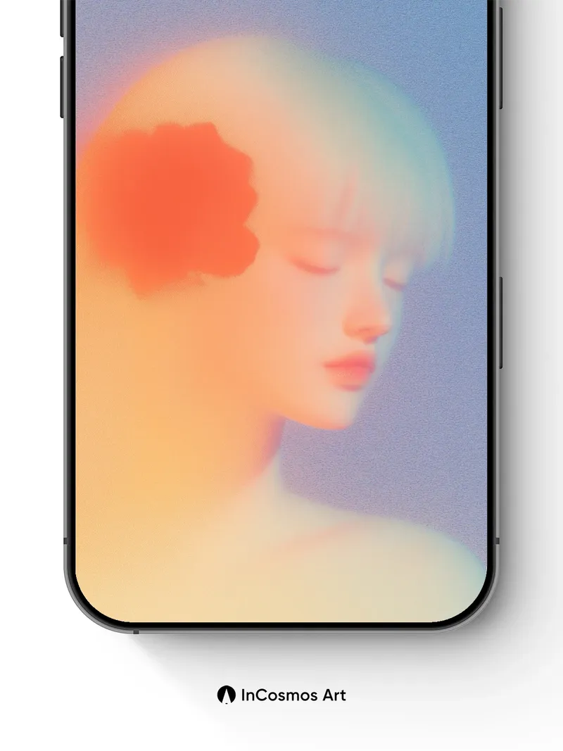 Soft Haze Portrait Wallpaper with Crimson Bloom