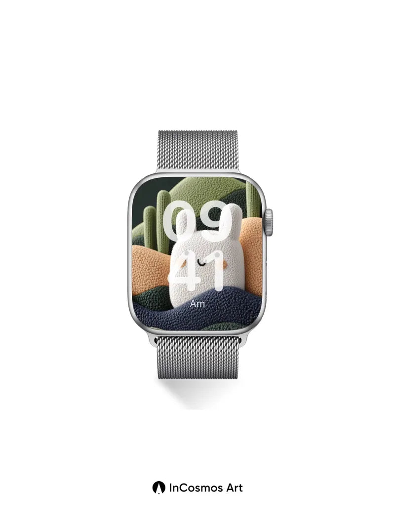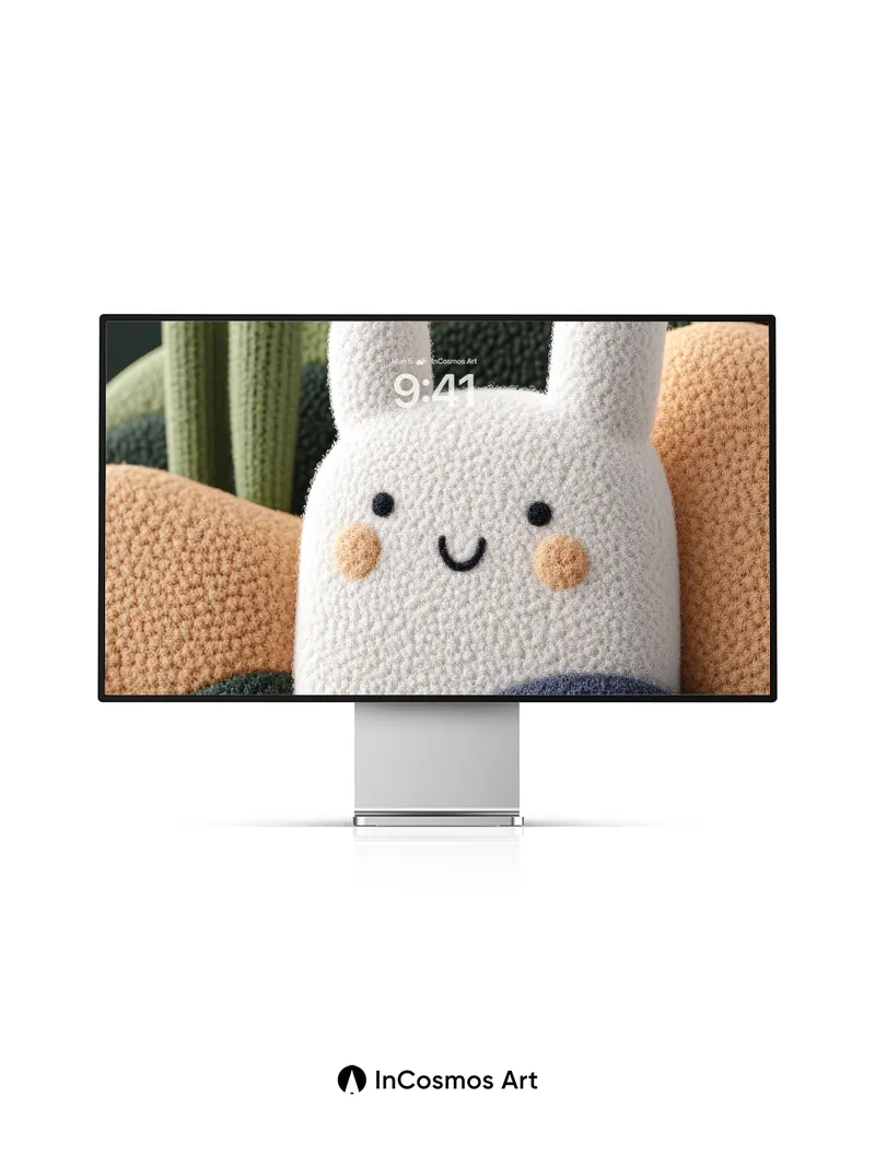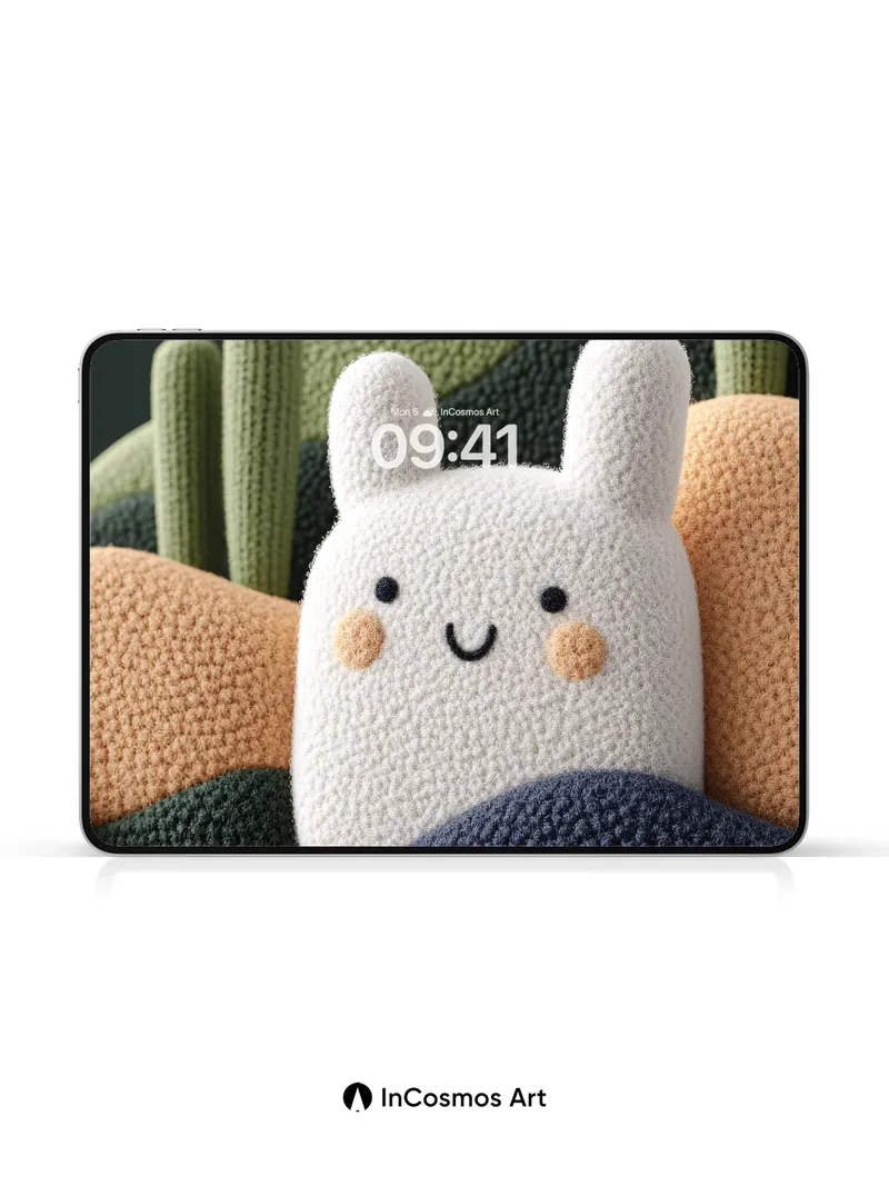 Debug page_description: Did you know wool fibers can absorb up to 30% of their weight in moisture without feeling damp? Here, a plush white rabbit peeks through undulating hills of textured knit fabric, each ridge catching light like morning dew on moss. The cacti stand tall and silent, their green spines woven into the terrain like ancient sentinels. This world feels warm enough to touch, soft enough to sink into—where every fold breathes with quiet joy. Share this with your best friend. Send this to your love and swap a matching set. What if your walls could whisper comfort?
