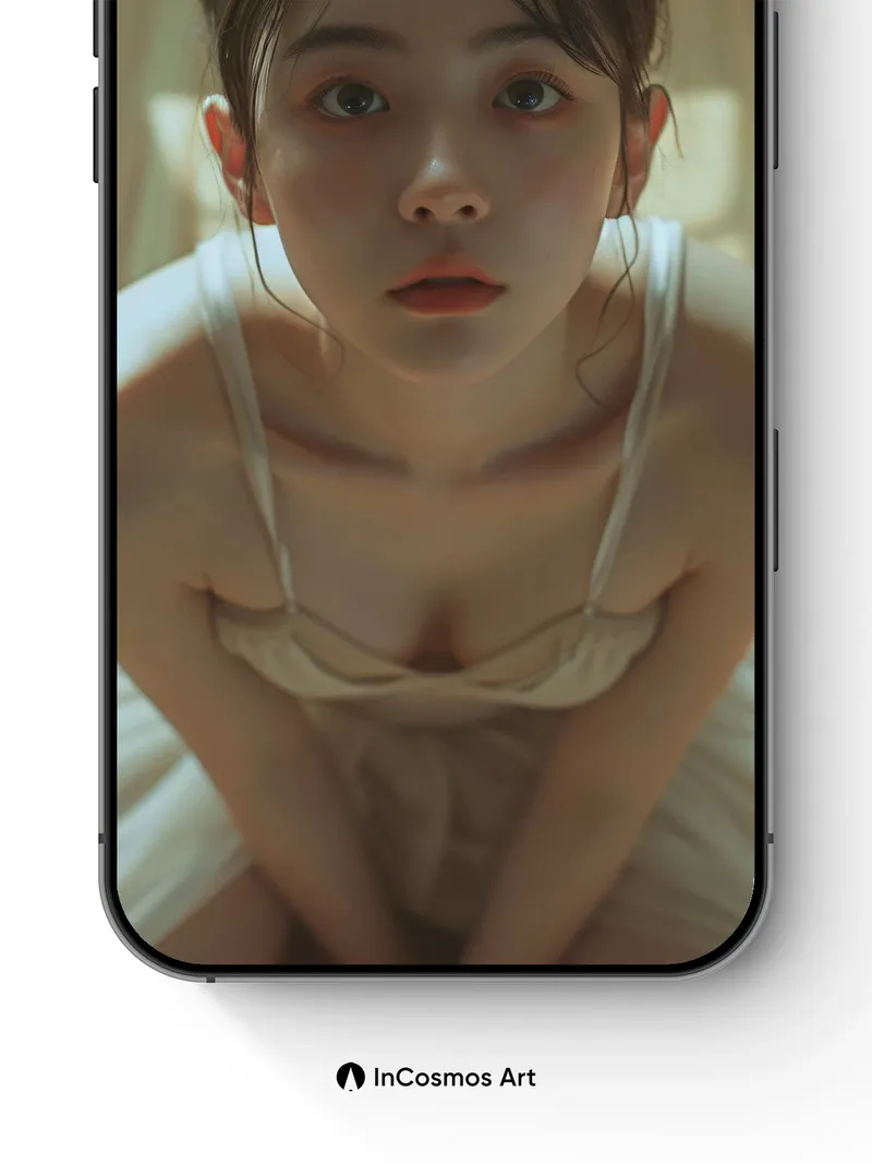 Debug page_description: Did you know the human eye can detect over one million colors, yet this moment feels like a single hue of quiet warmth? Sunlight spills across her skin like liquid silk, tracing the curve of her collarbone and pooling in the hollows of her shoulders, while shadows breathe softly beneath her arms. Her hair, coiled high in a loose knot, frames a face still in thought, eyes wide and unguarded, as if she’s just woken from a dream that didn’t end. Share this with your best friend. Send this to your love and swap a matching set. What if silence could be worn like a dress?