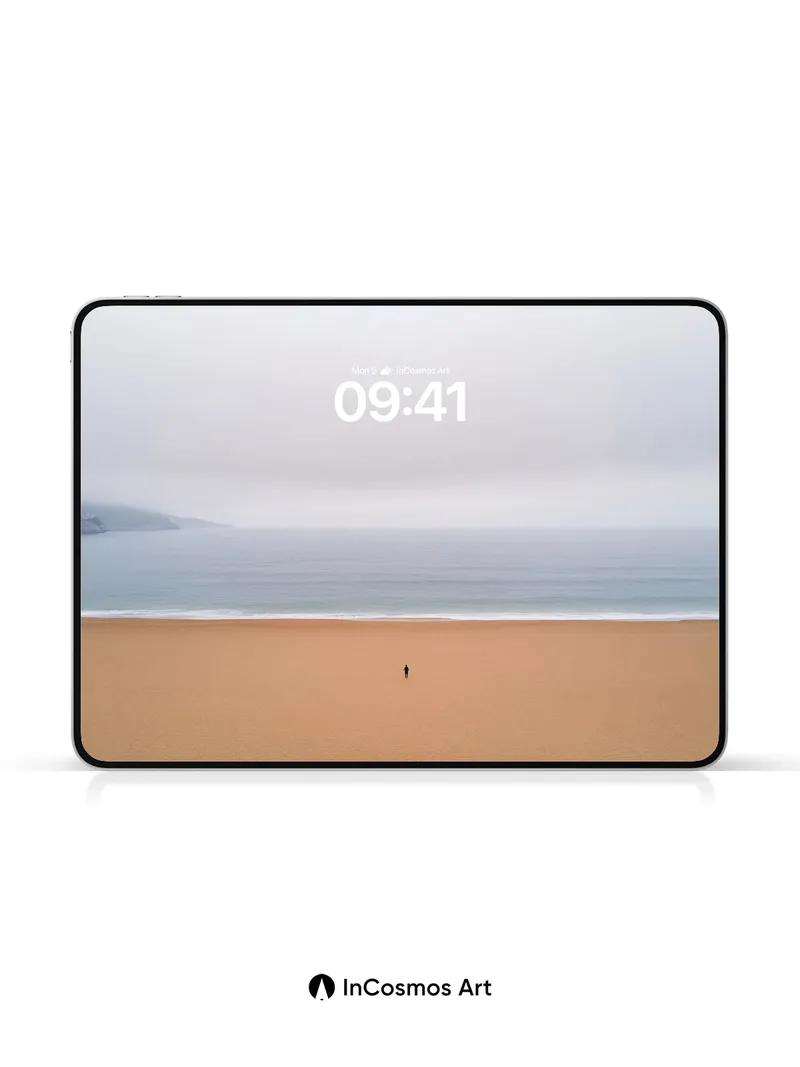 Solitary Horizon Wallpaper with Fog-Drifted Sand