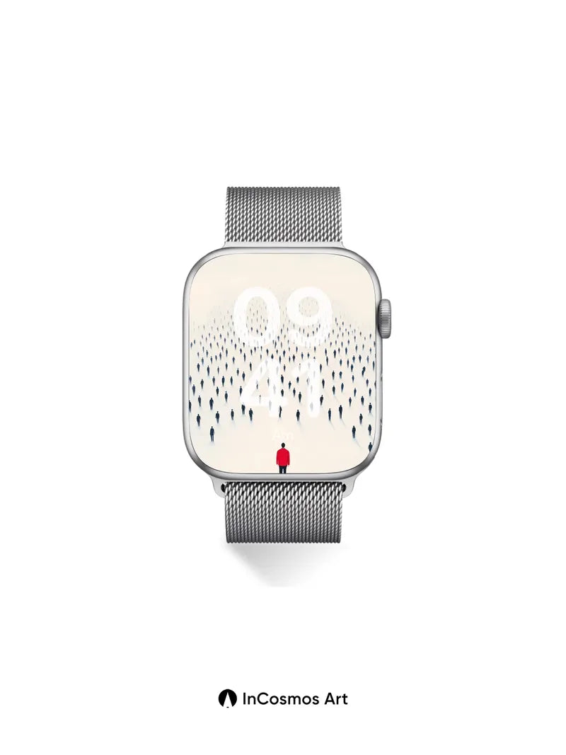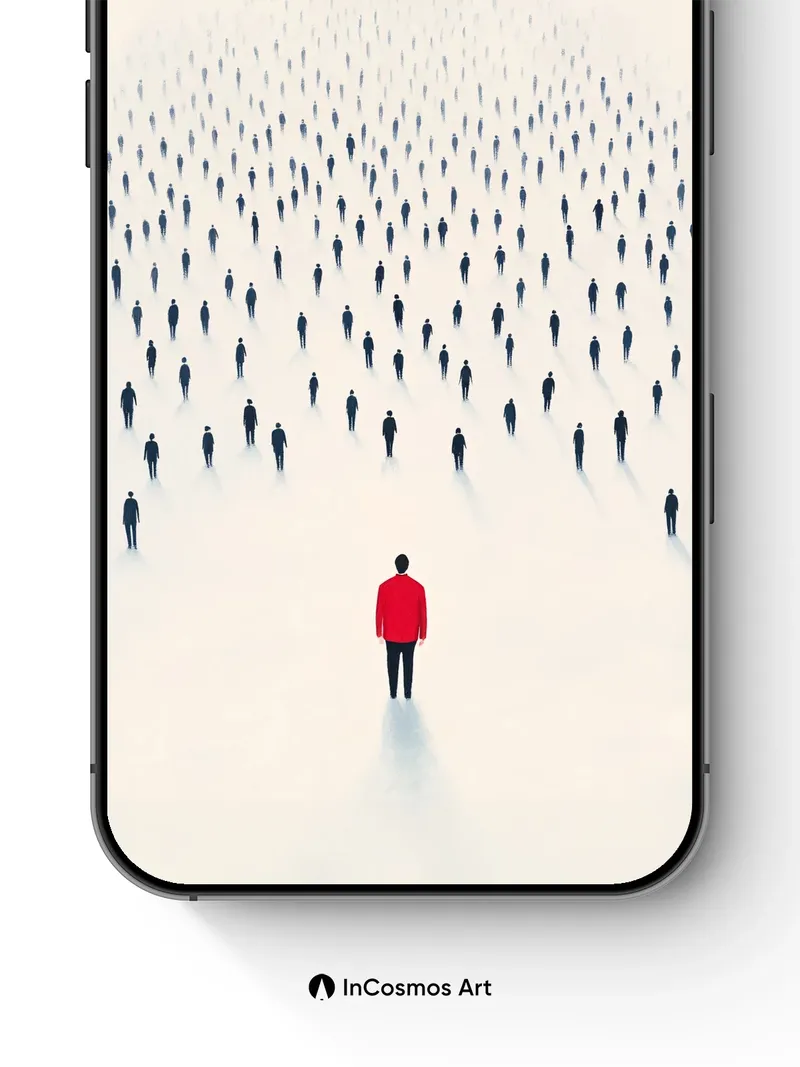 Solitary Red Figure Wallpaper with Infinite Crowd