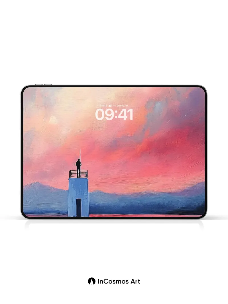 Solitary Sentinel Wallpaper with Crimson Horizon