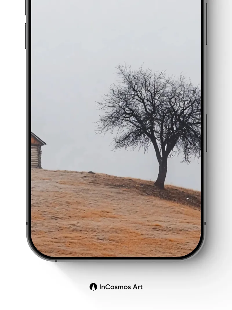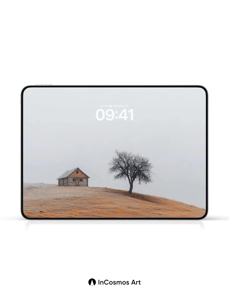 Solitary Stillness Wallpaper with Fog-Whispered Hills