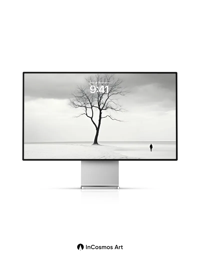 Debug product.metafields.custom.desc: Did you know the oldest known tree in the world, a bristlecone pine, has survived over 5,000 years through drought and frost? Its bare branches reach like frozen fingers across a sky heavy with stillness, where light crawls over ice like memory. A lone figure walks into the distance, small against the vast silence—each step echoing not in sound, but in the slow breath of an endless winter.