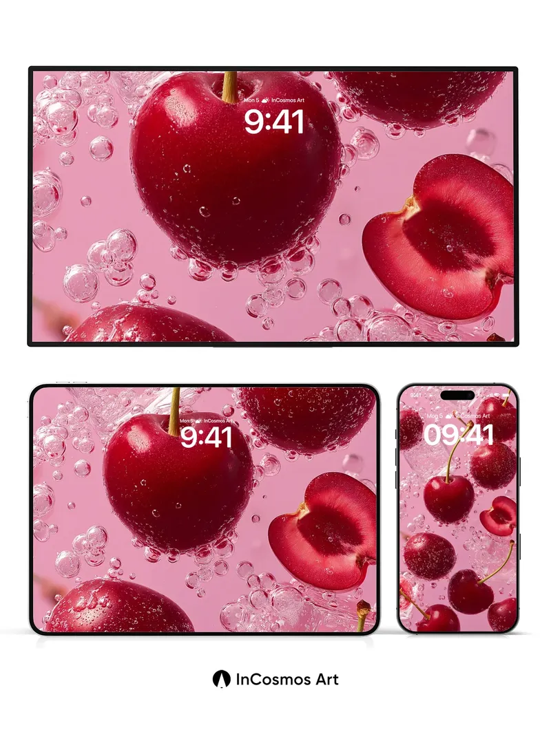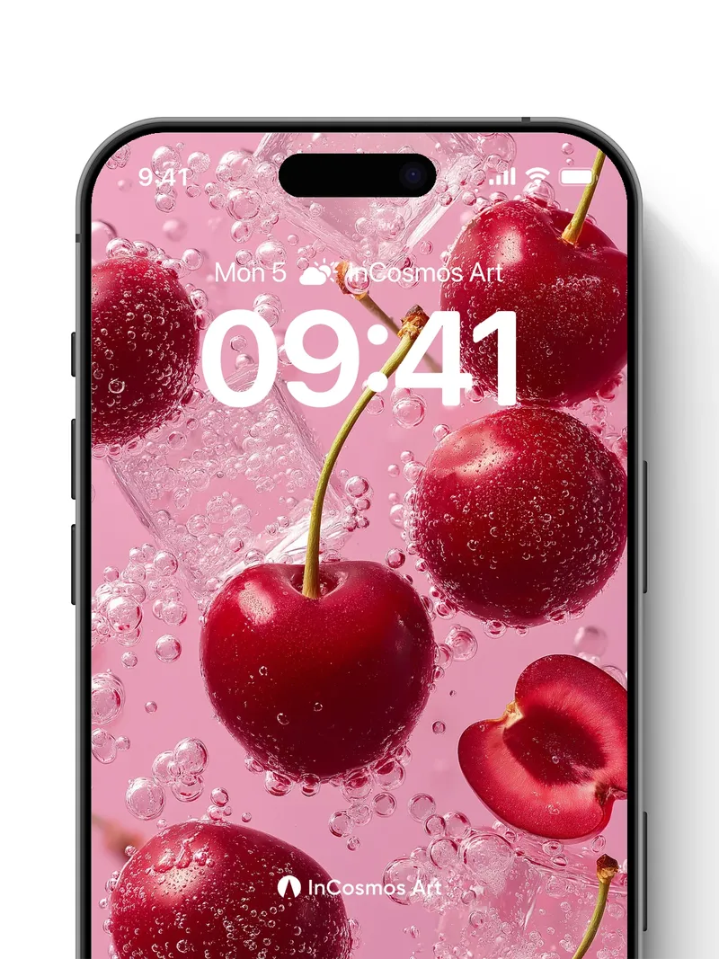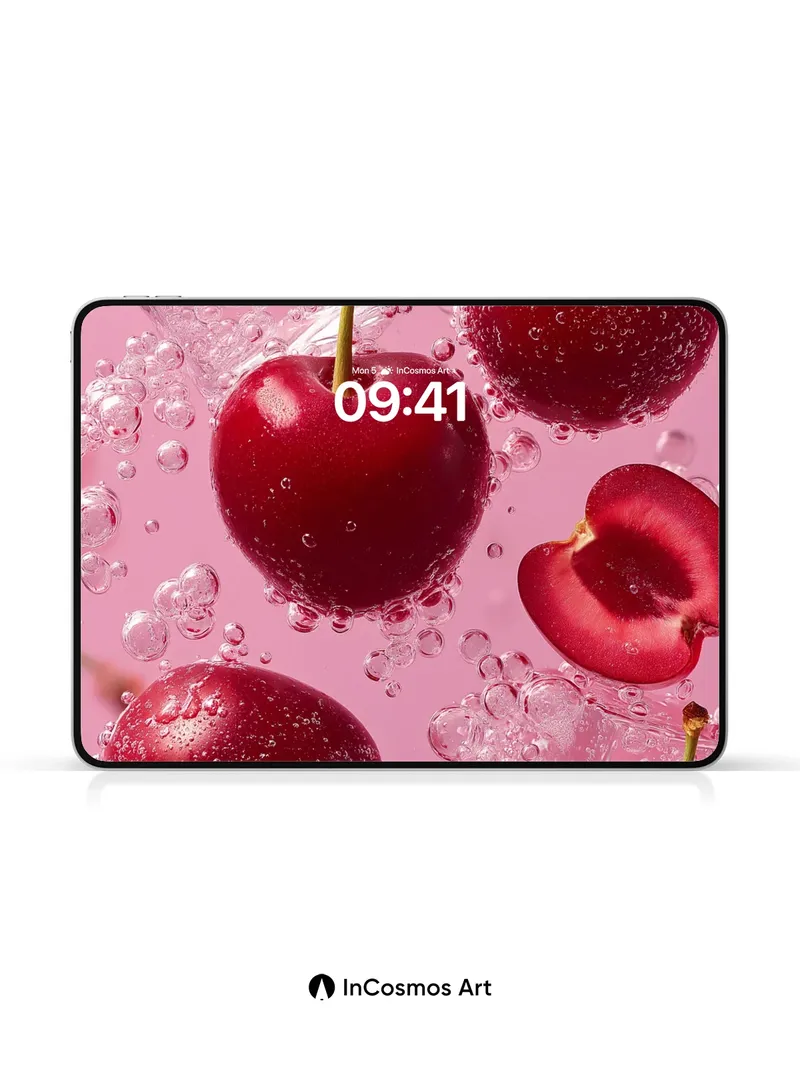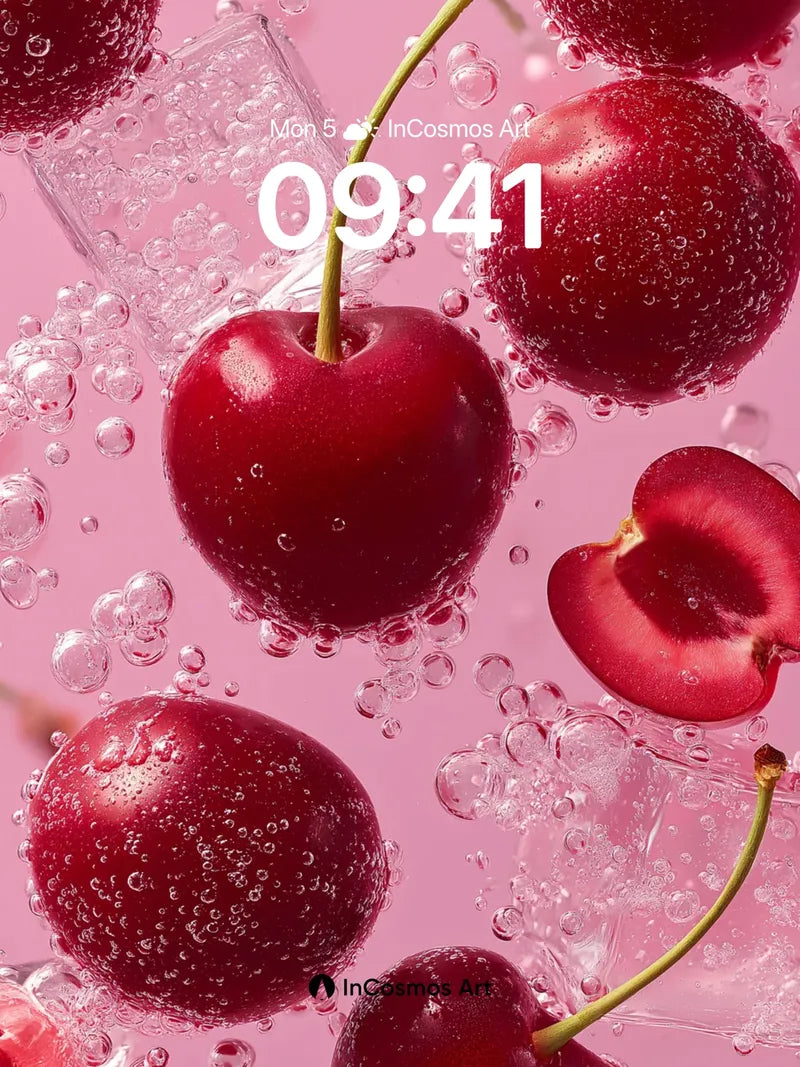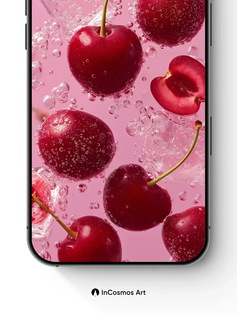 Sparkling Cherry Burst Wallpaper with Bubbly Light