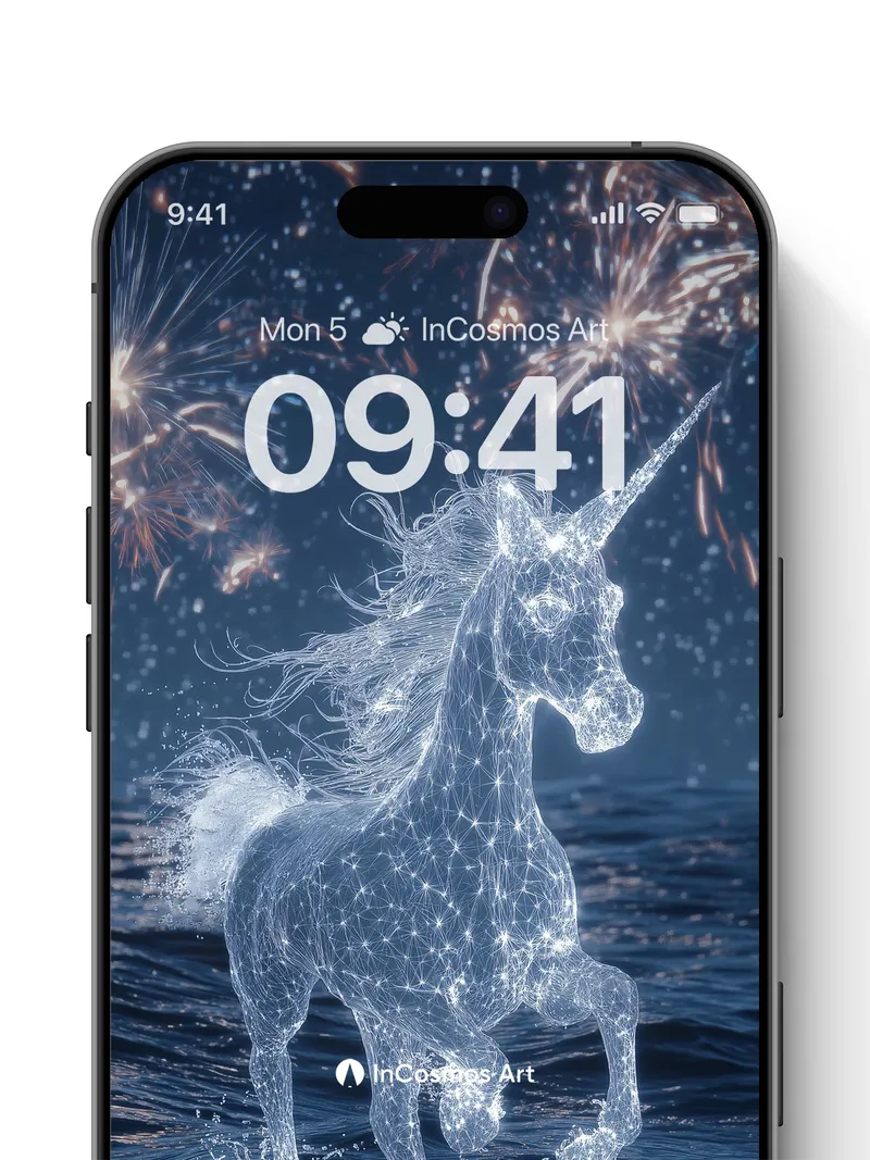 Starlight Unicorn Wallpaper with Cosmic Fireworks