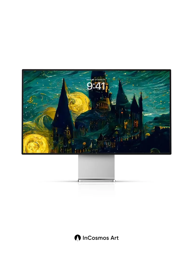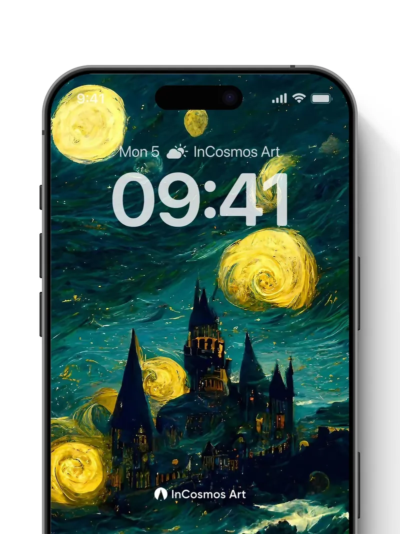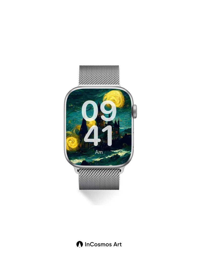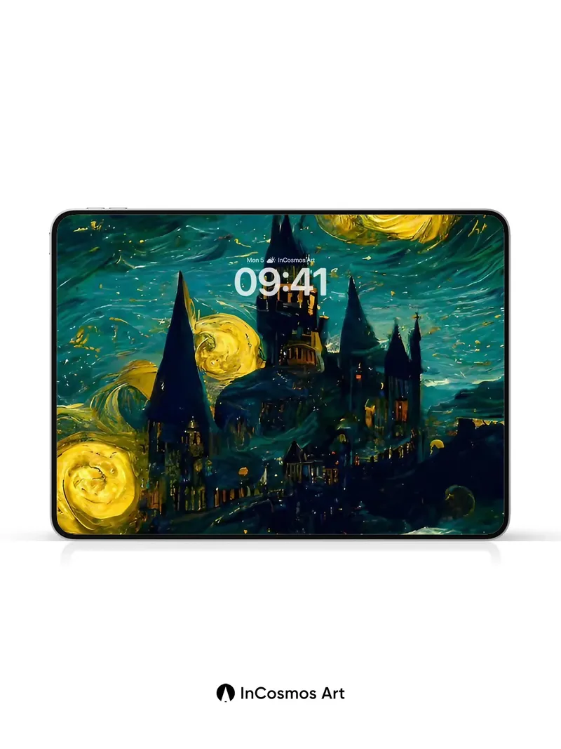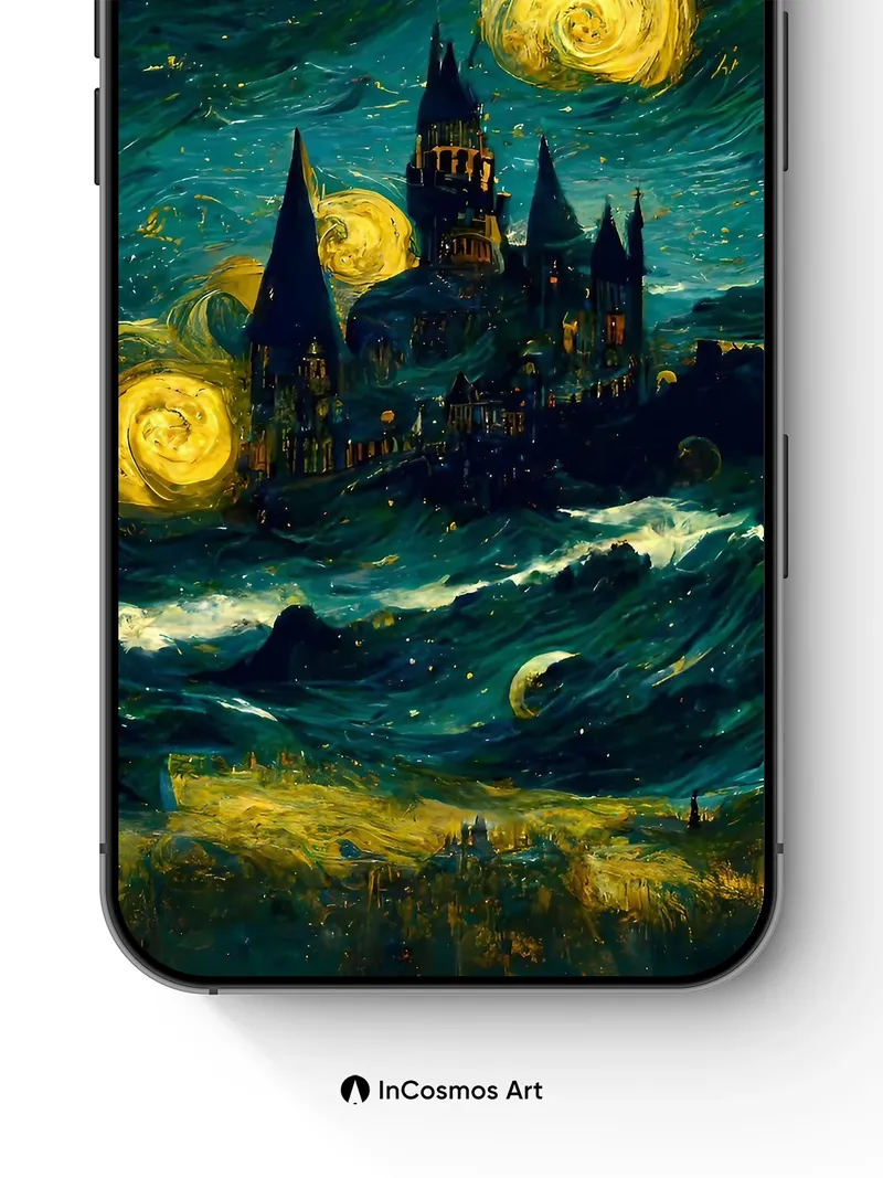 Starry Castle Wallpaper with Van Gogh Swirls