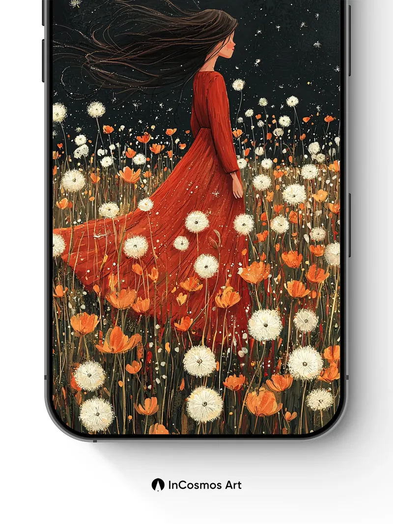 Starry Field Wallpaper with Whispering Dandelions