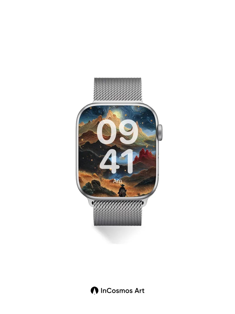 Debug product.metafields.custom.desc: Did you know Vincent van Gogh painted 'The Starry Night' while in a mental health asylum, channeling turbulence into swirling celestial fire? Here, light breathes through molten peaks and star-dusted skies, where every ridge pulses like a heartbeat beneath a galaxy of gold shells. A lone figure stands at the edge of time, silhouetted against an eternal night that hums with unseen motion.