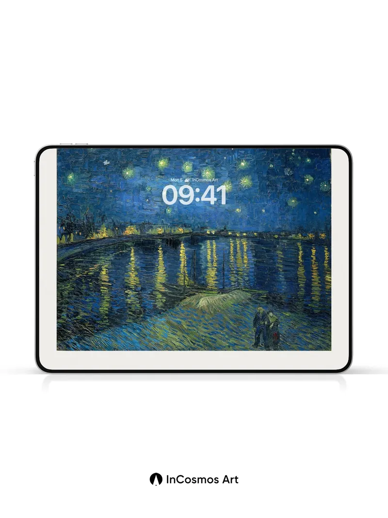 Starry Night River Wallpaper with Van Gogh's Brushstroke
