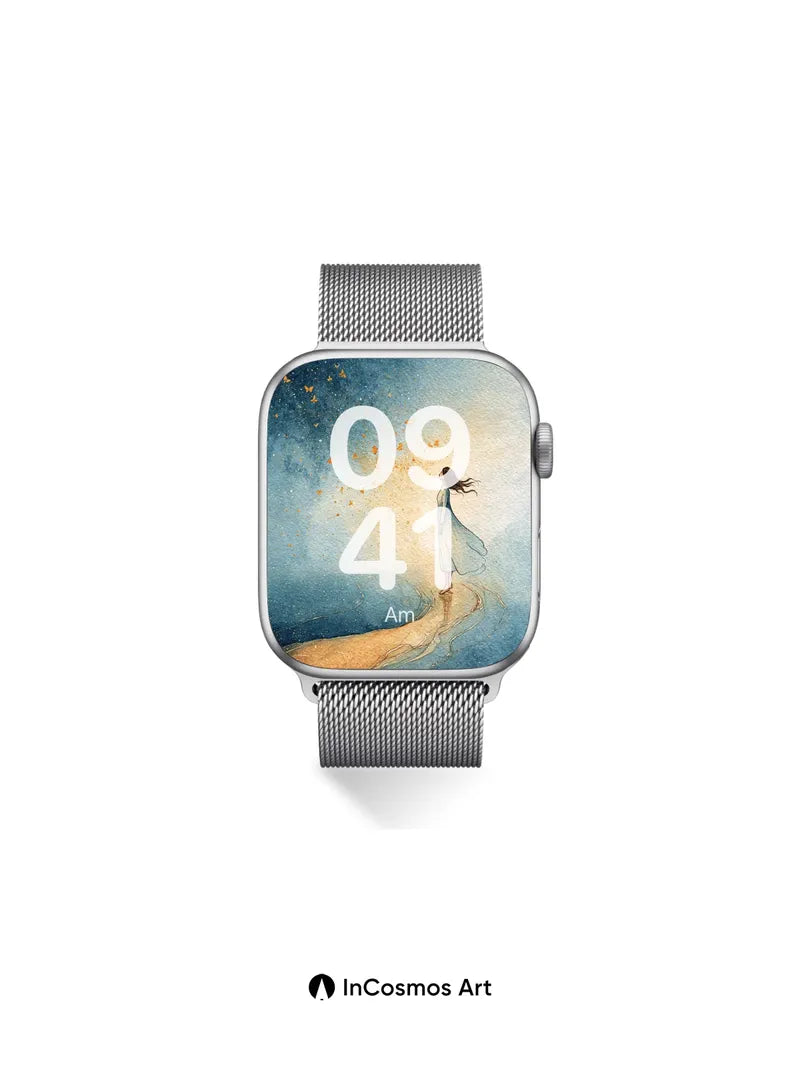 Debug product.metafields.custom.desc: Did you know that in ancient cultures, butterflies were believed to carry the souls of the departed? Here, golden wings drift like embers through a twilight sky, tracing a luminous path where light breathes across water and sand. A solitary figure walks barefoot on a ribbon of earth that glows beneath her feet, as if the world itself is whispering secrets only she can hear.