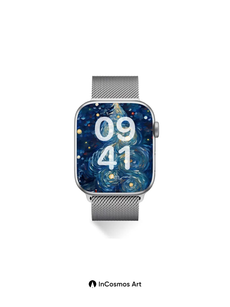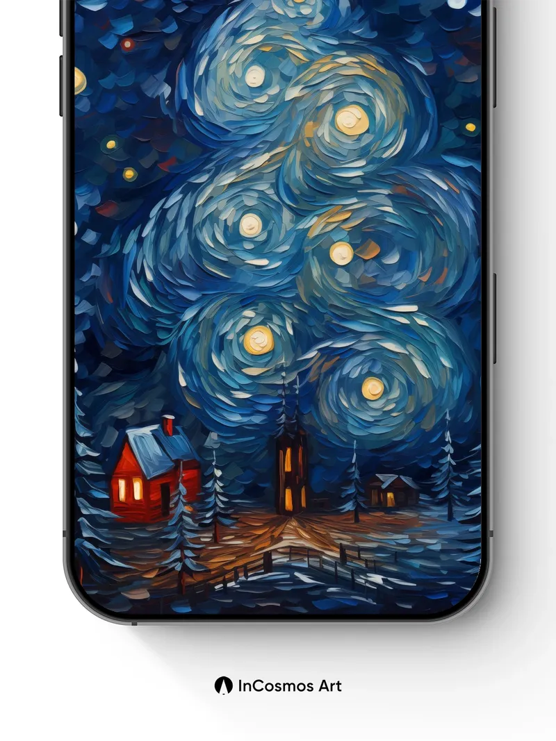 Debug product.metafields.custom.desc: Did you know Vincent van Gogh painted 'The Starry Night' while in a mental health asylum, channeling turbulence into swirling light? Here, that same cosmic energy spirals upward through a luminous evergreen, its branches like galaxies unfurling under a radiant star. The night sky breathes in deep cobalt waves, each star a tiny sun nestled in the tree’s folds, casting golden halos over snow-dusted cabins below.