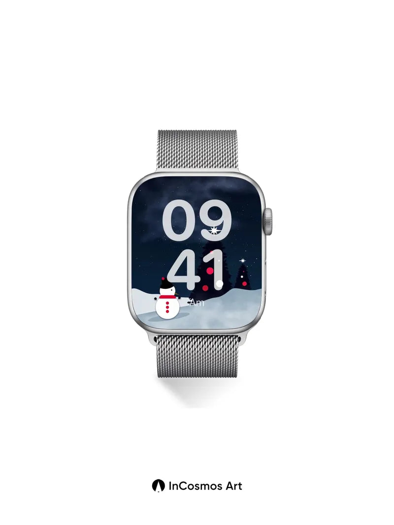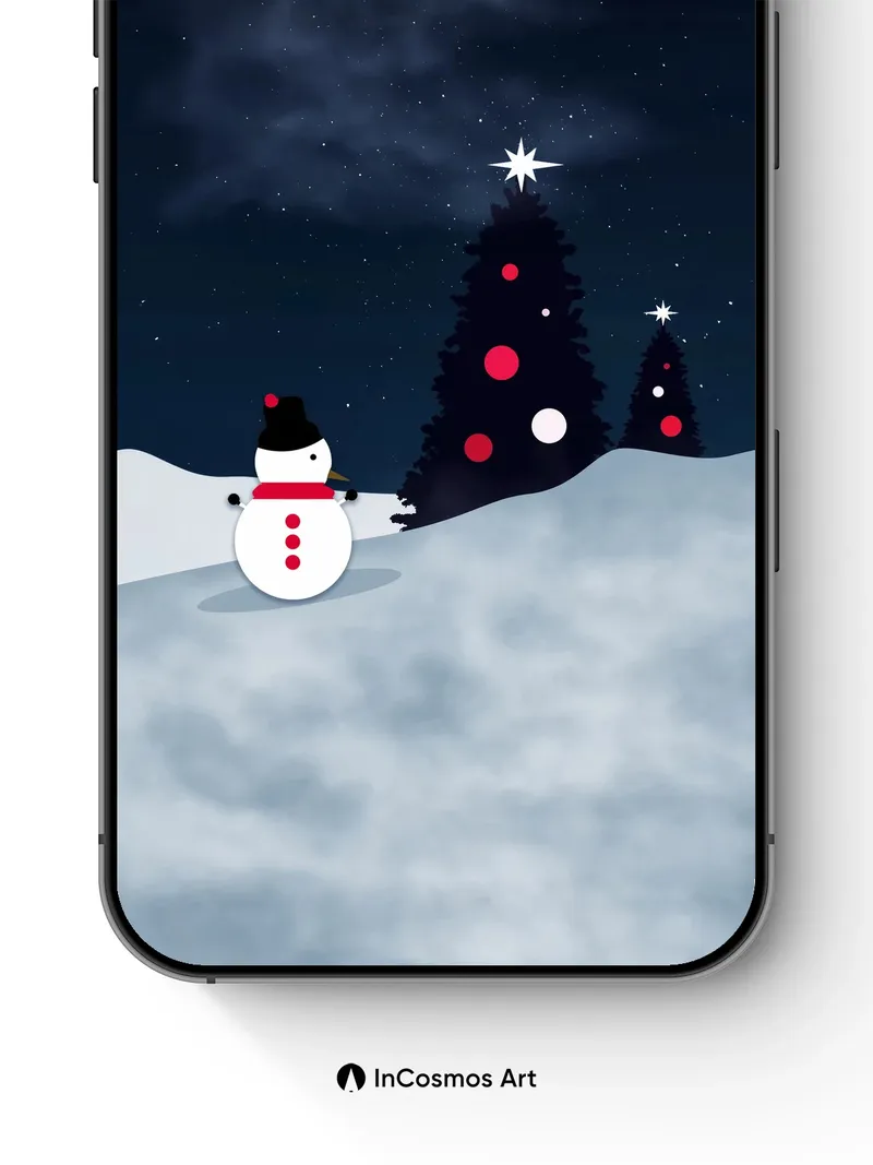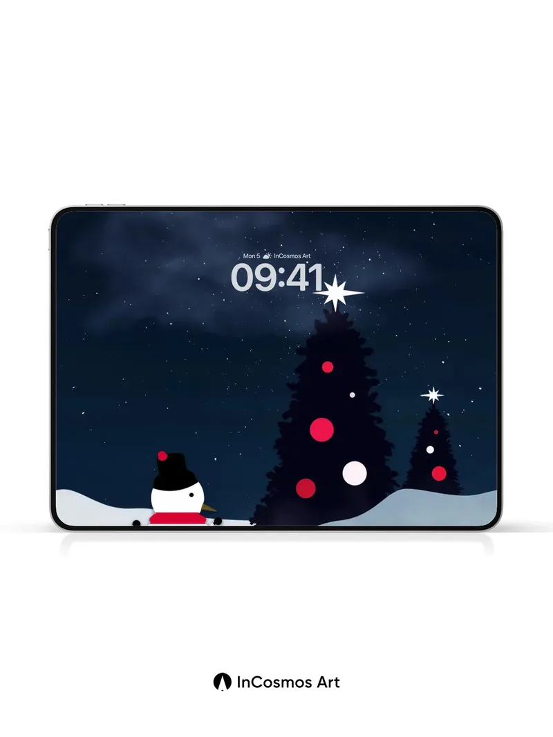 Debug product.metafields.custom.desc: Did you know snowflakes form unique hexagonal crystals as they fall through varying temperatures? In this quiet scene, frost clings to the air like whispered secrets, and a lone snowman watches over a forest where pine trees shimmer with red ornaments under a sky stitched with stars. The cold breathes slowly across the land, each flake a fleeting poem written in ice.