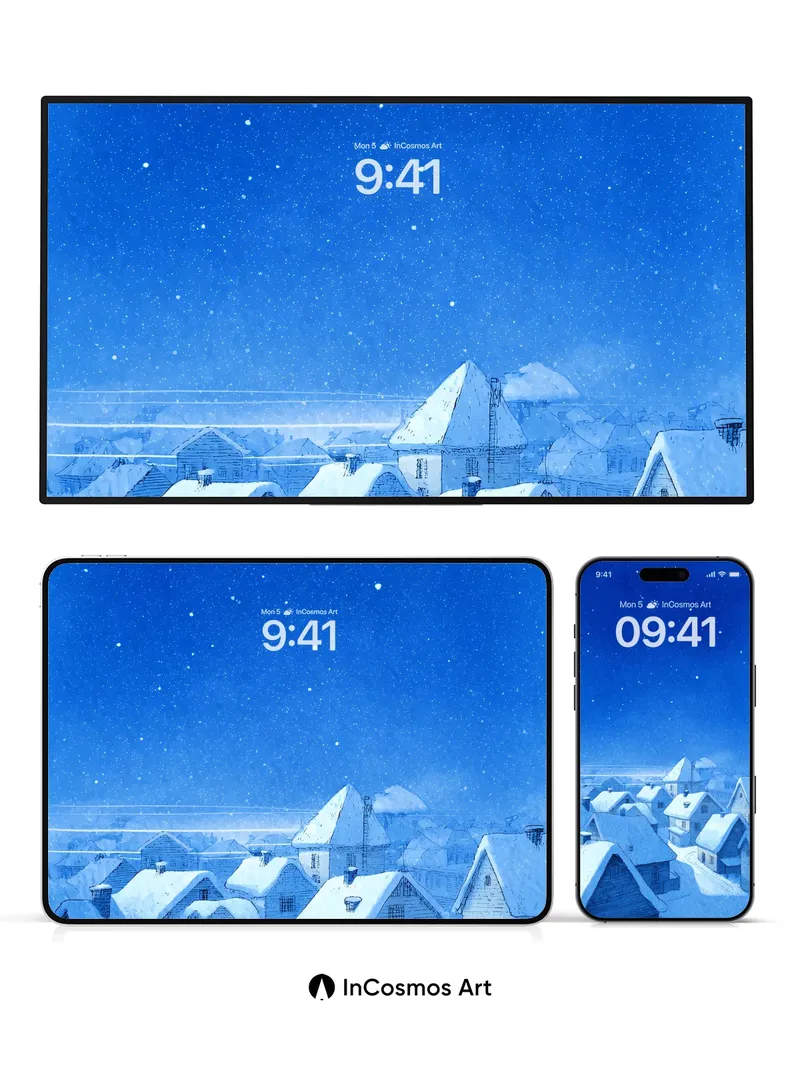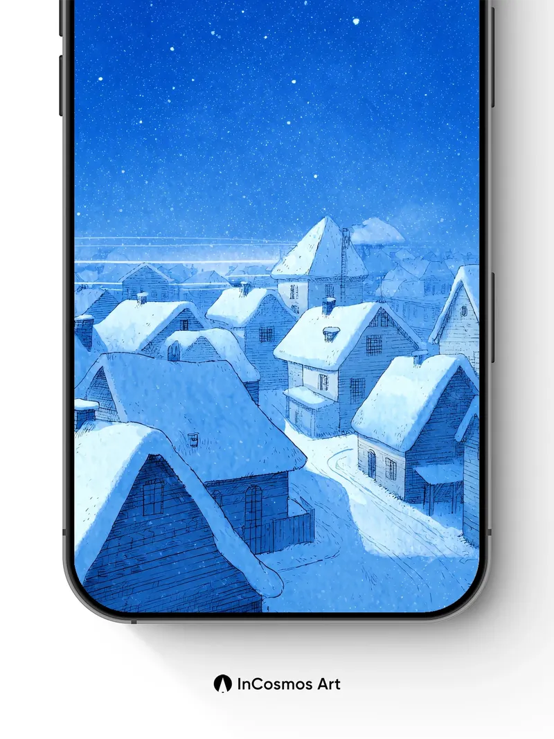 Stellar Hush Wallpaper with Snow-Capped Roofs