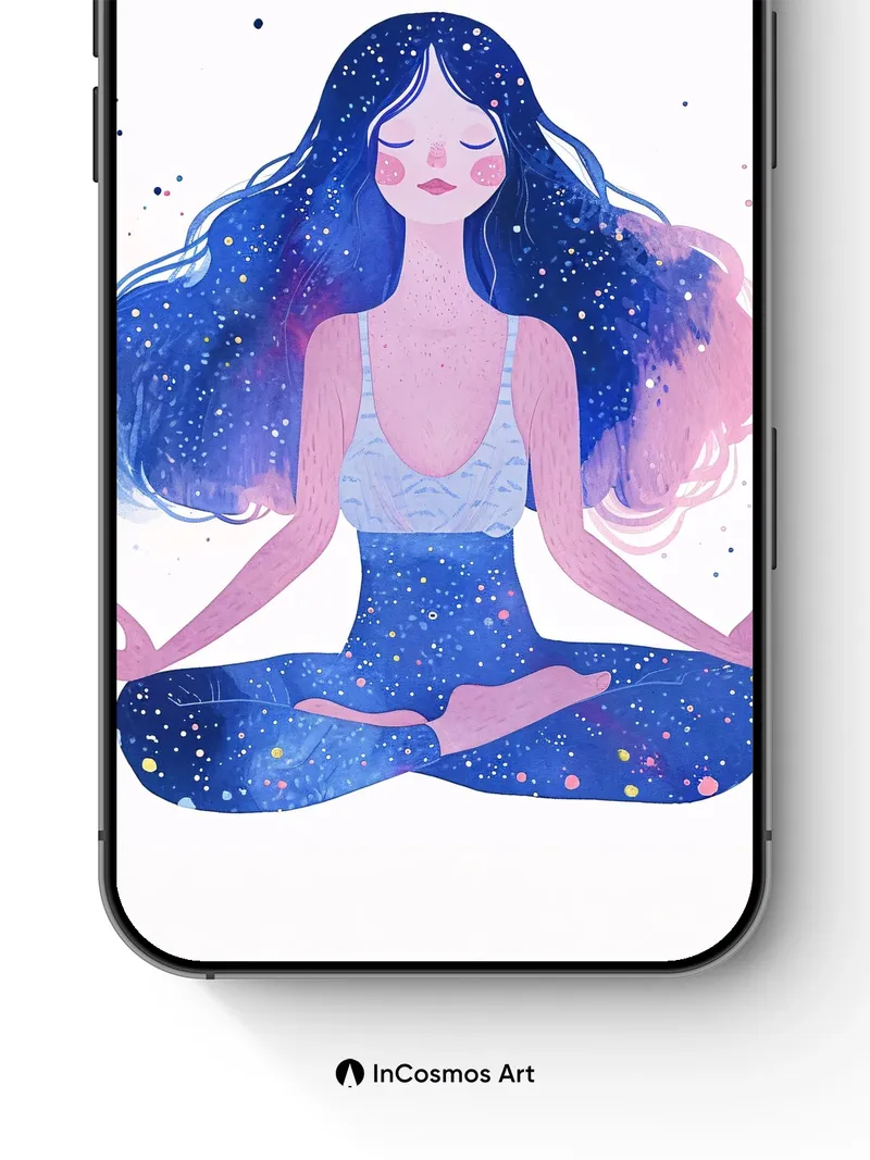 Debug page_description: Did you know the Milky Way contains over 100 billion stars, each a potential world? Here, they drift through her hair like living constellations, woven into midnight waves that shimmer with nebula hues. Her stillness holds the universe’s breath—eyes closed, hands cradling silence as if it were sacred. This is not just meditation; it's communion with the cosmos, where every starlight pulse echoes in your own quiet heart. Share this with your best friend. Send this to your love and swap a matching set. What if your thoughts could become galaxies?
